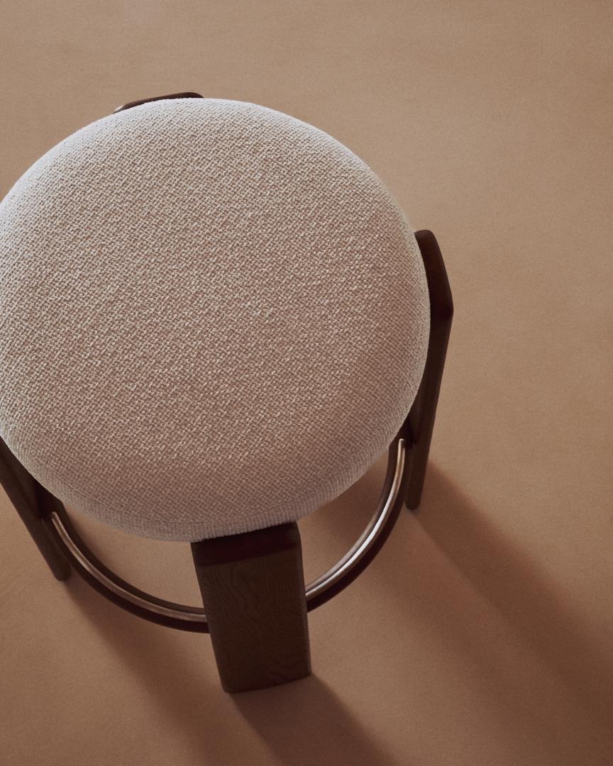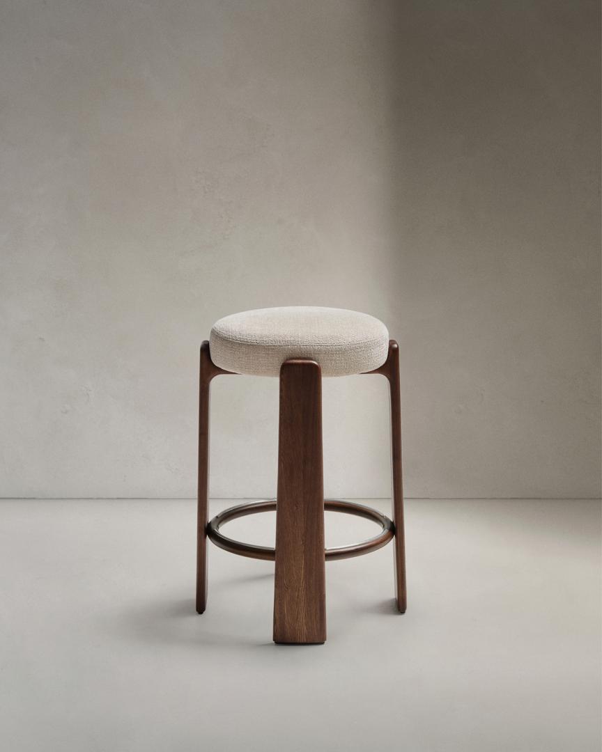 Стул барный La Forma (ех Julia Grup) Granite Барный табурет из бежевого шенилла и массива ясеня в отделке орех 75 см арт. 420263
