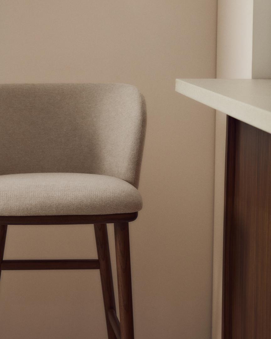 Стул барный La Forma (ех Julia Grup) Барный стул Ciselia из бежевого шенилла с ножками из ясеня в отделке орех арт. 463527
