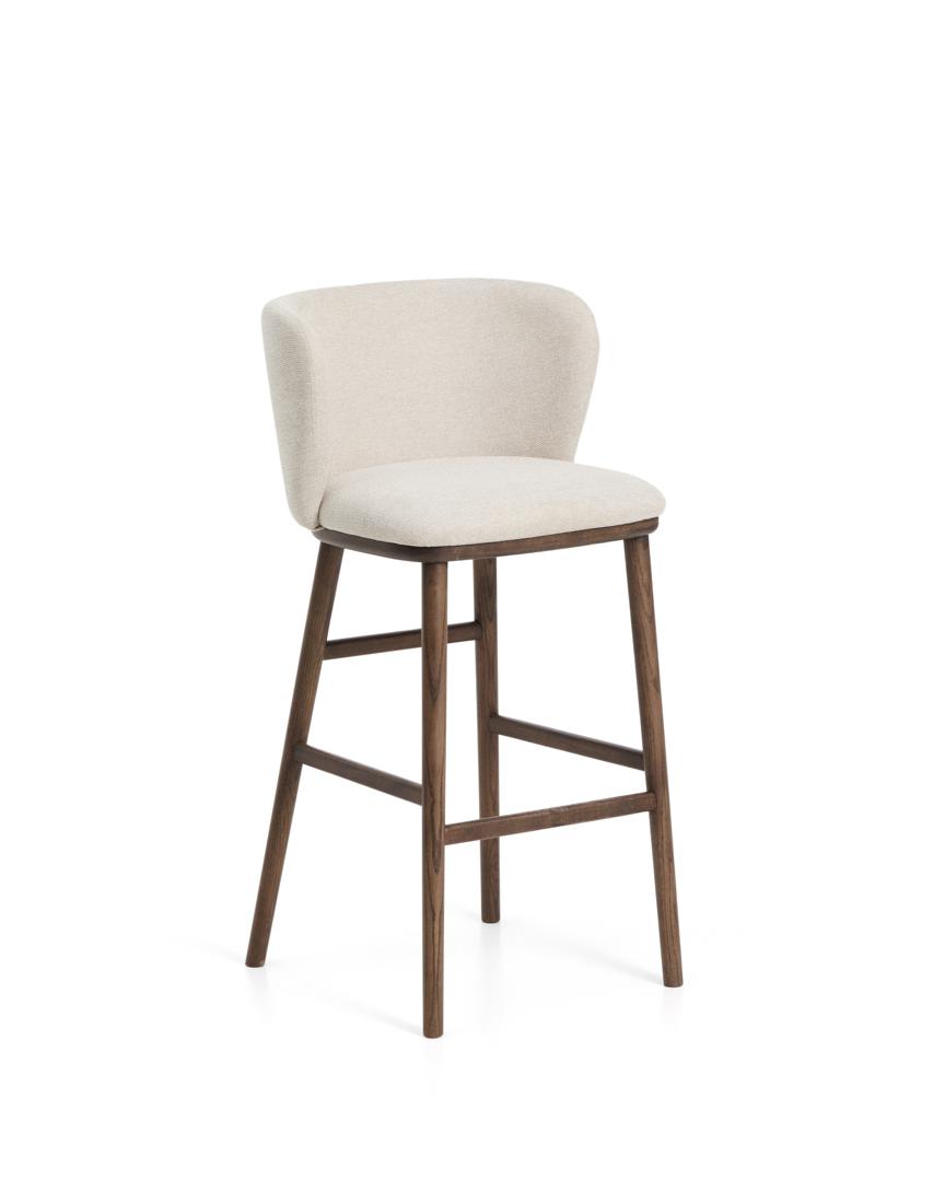 Стул барный La Forma (ех Julia Grup) Барный стул Ciselia из бежевого шенилла с ножками из ясеня в отделке орех арт. 463527