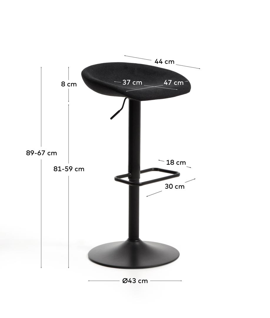Стул барный La Forma (ех Julia Grup) Барный табурет Danua из черной синели и матовой черной стали, 68-89 см арт. 483481