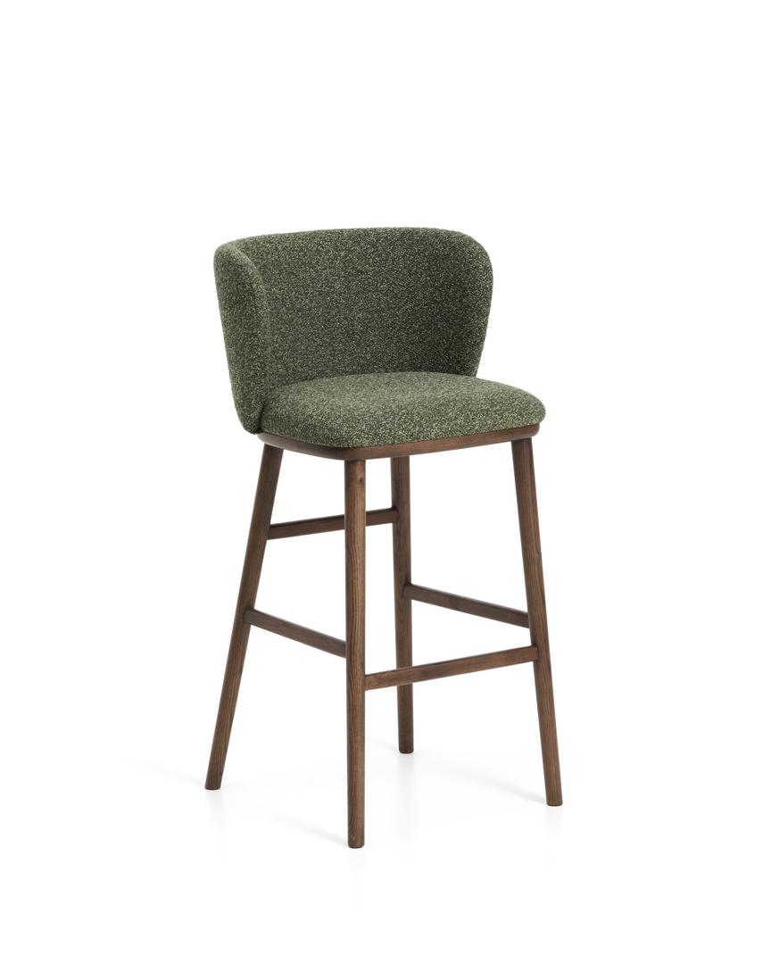 Стул барный La Forma (ех Julia Grup) Барный стул Ciselia из темно-зеленого шенилла с ножками из ясеня в отделке орех арт. 463523