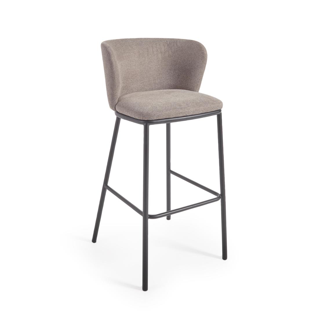 Стул барный La Forma (ех Julia Grup) Ciselia Барный стул из светло-коричневой синели и черной стали, 75 см арт. 147852