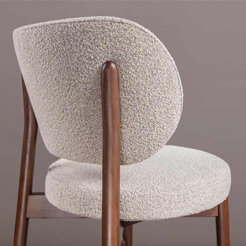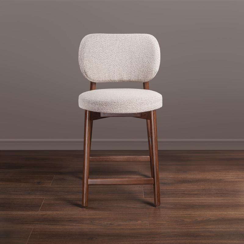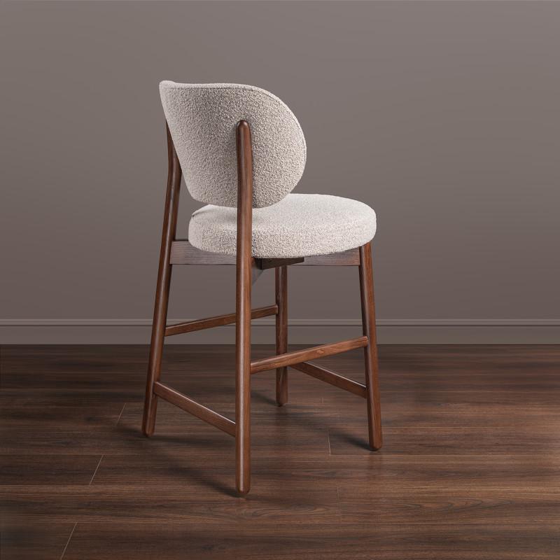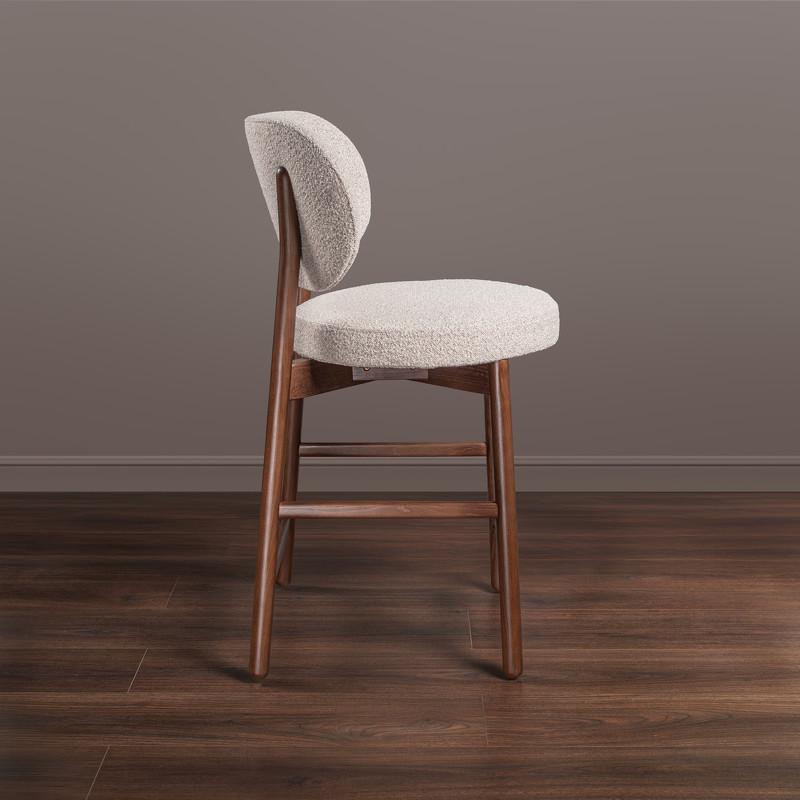 Полубарный стул от фабрики MOD Interiors с закругленной спинкой выполнен в современном стиле. Каркас стула выполнен из МДФ и массива бука. Ножки стула из массива бука в цвете итальянский орех, обивка ткань букле в бежевых оттенках. Наполнитель: ППУ повышенной износостойкости. Ткань букле имеет отличные показатели по износоустойчивости и плотности. Рекомендации по уходу за тканью: Сухая уборка пылесосом с мягкой щеткой; Влажная уборка микрофиброй; Беречь от прямых солнечных лучей; Не ближе 40-60 см от источников тепла; Не использовать отбеливатель; Не использовать абразивные средства.