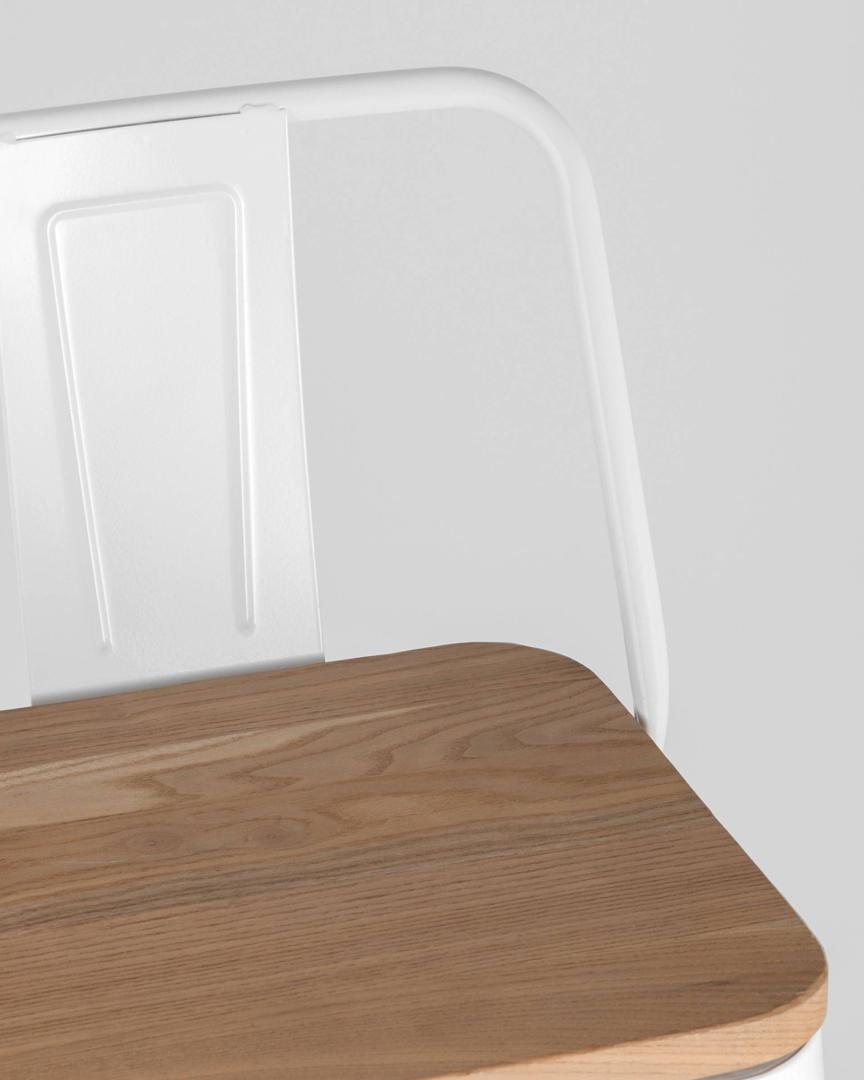 Стул Stool Group TOLIX WOOD со спинкой белый глянцевый массивное металлическое основание цвета, широкая низкая спинка из оцинкованного металла с порошковым напылением