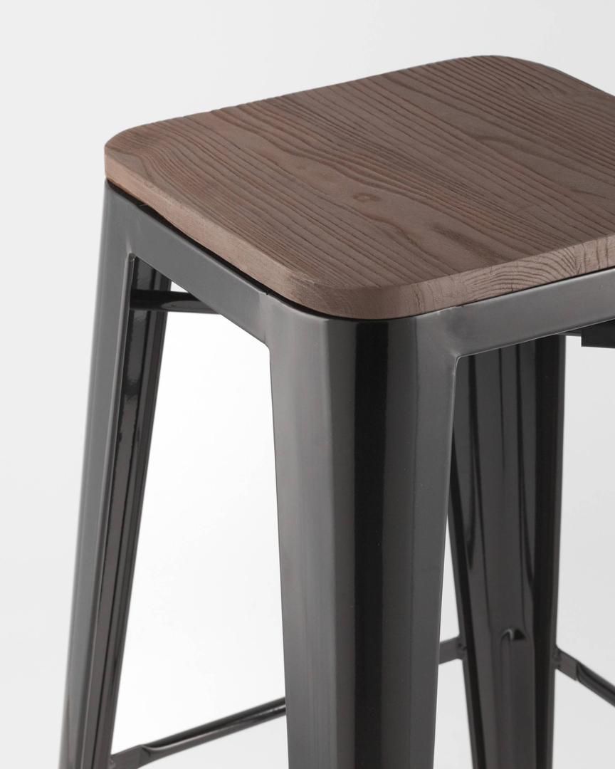 Стул Stool Group барный TOLIX WOOD черный глянцевый, оцинкованный металл с порошковым напылением, сиденье из натурального дерева