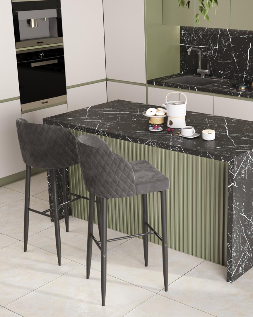 Стул Stool Group барный Оскар велюр серый, обивка из практичной и устойчивой к истиранию мебельной велюровой ткани, металлические ножки черного цвета