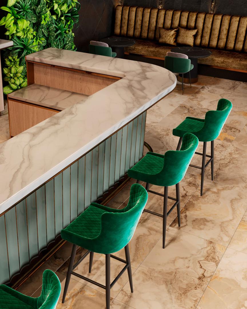 Стул барный Ститч велюр изумрудный, обивка из мебельной велюровой ткани