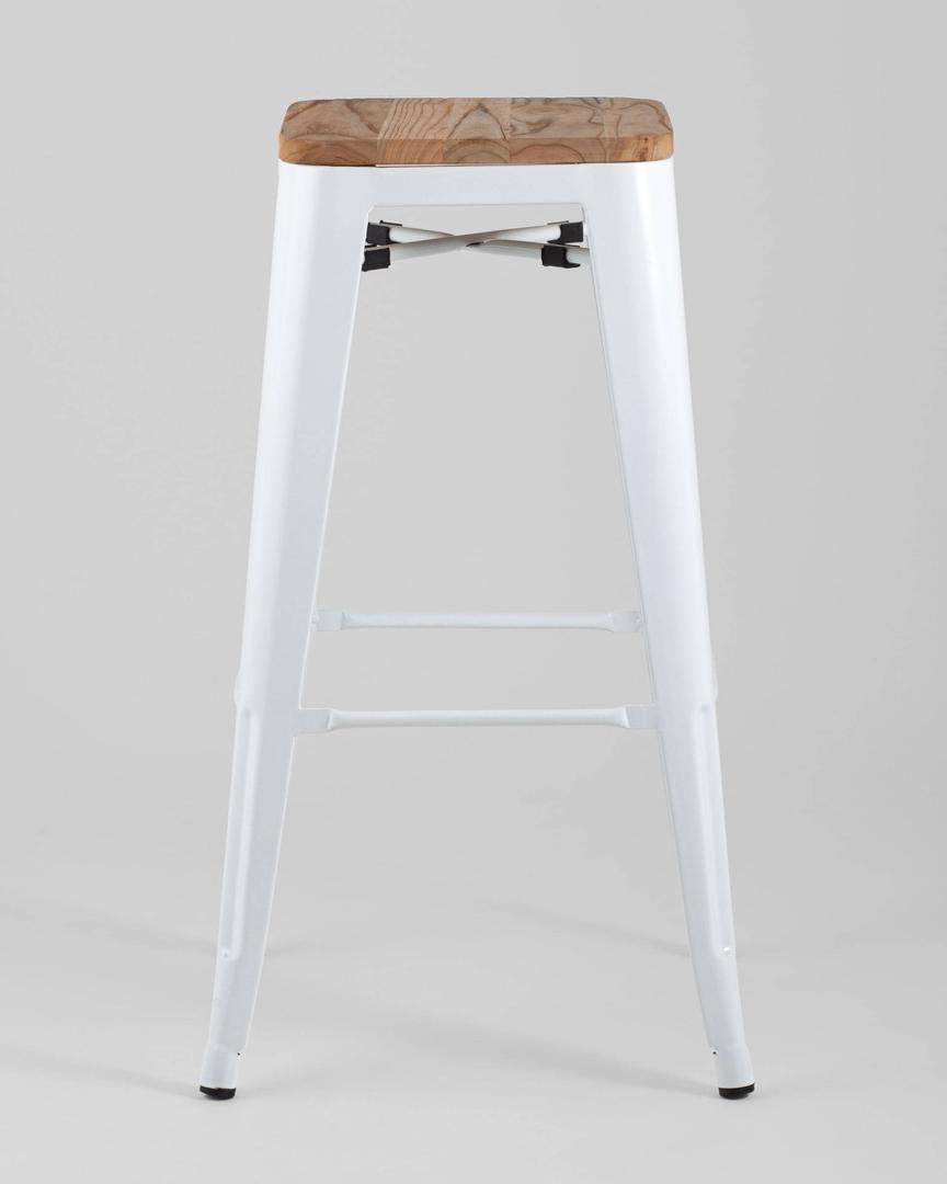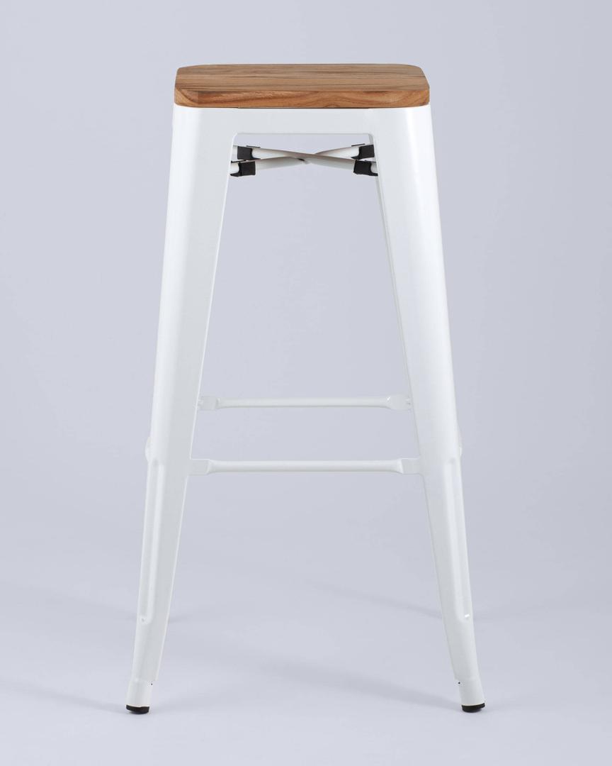 Стул Stool Group барный TOLIX WOOD белый глянцевый, оцинкованный металл с порошковым напылением, сиденье из натурального дерева