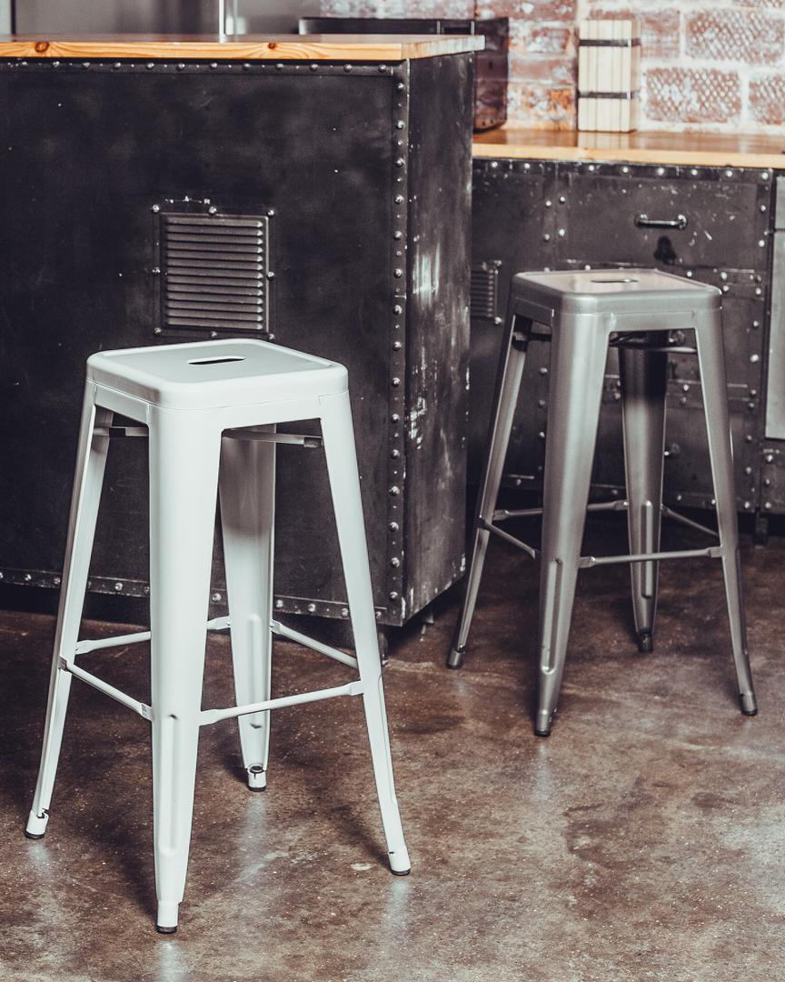 Стул Stool Group БАРНЫЙ TOLIX серебристый матовый, широкое удобное сиденье, металлические ножки