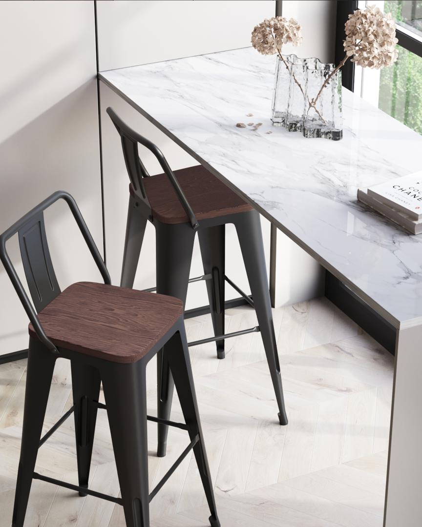 Стул барный Stool Group Стул барный TOLIX WOOD со спинкой черный глянцевый арт. УТ000000676