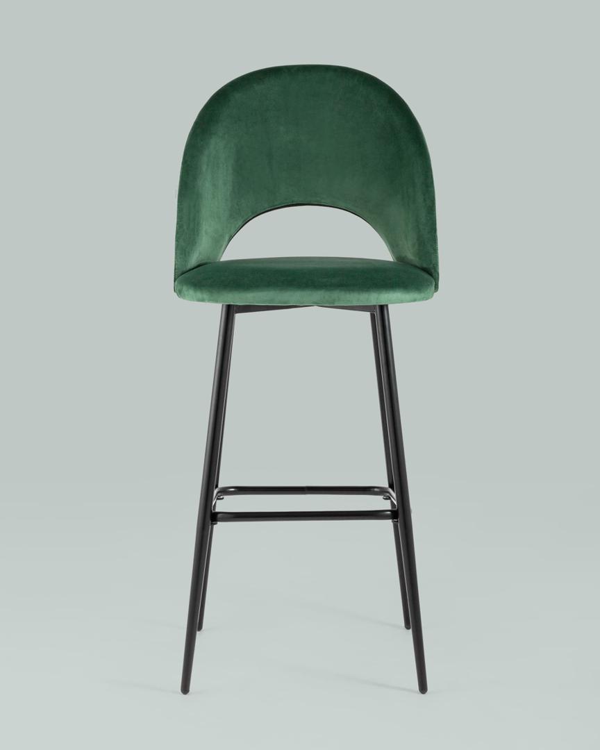 Стул барный Меган обивка велюр зеленый ножки металл черные