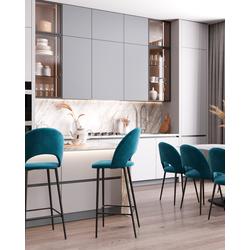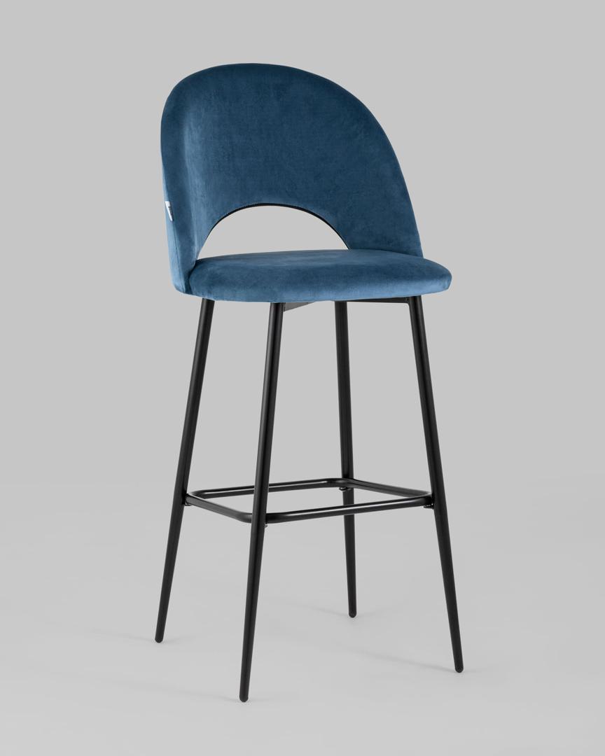 Стул барный Меган обивка велюр пыльно-синий ножки металл черные