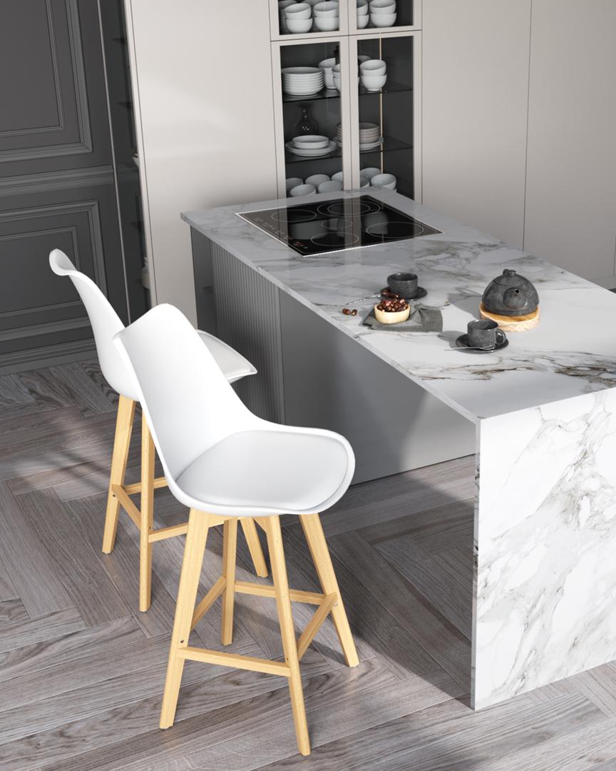 Стул барный FRANKFURT белый сиденье экокожа ножки из массива бука