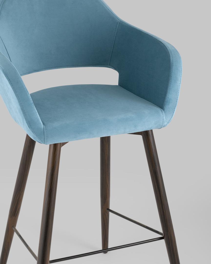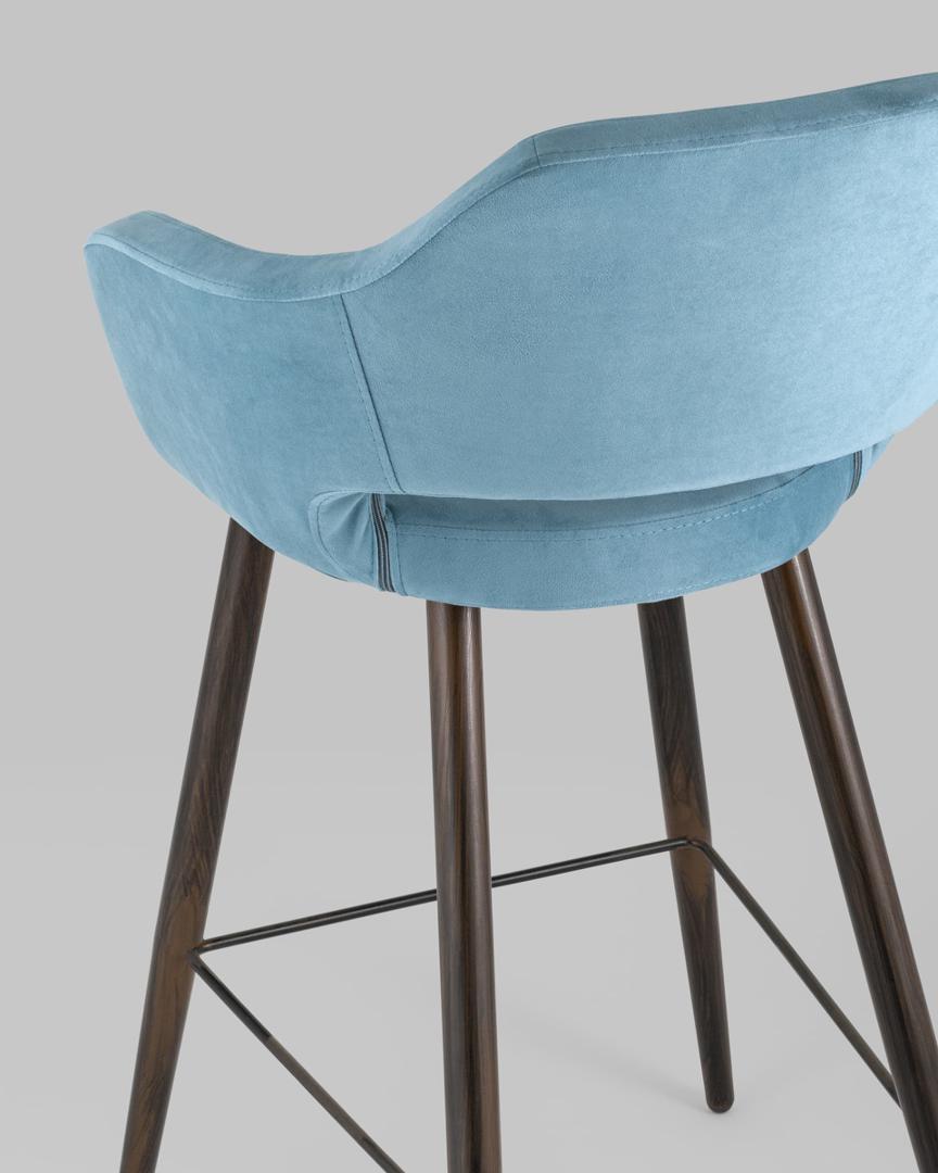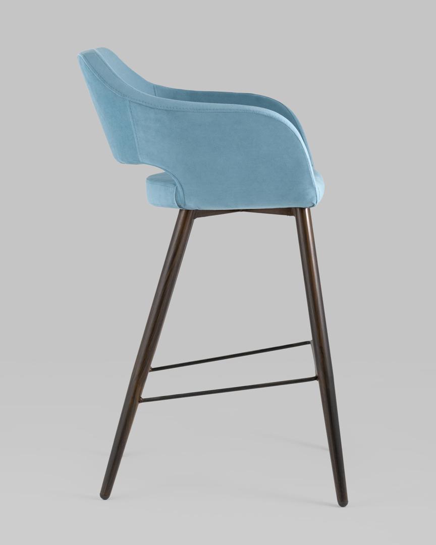 Стул барный Саймон обивка велюр пыльно-голубой ножки металл темное дерево