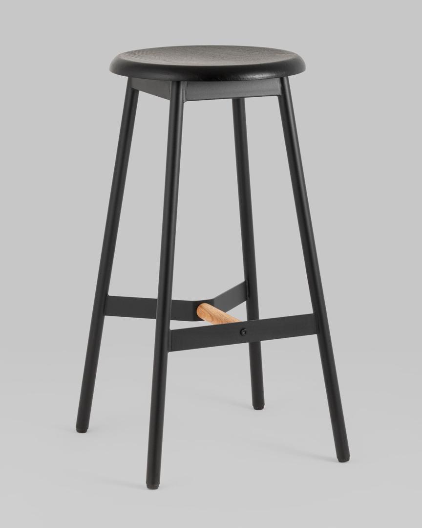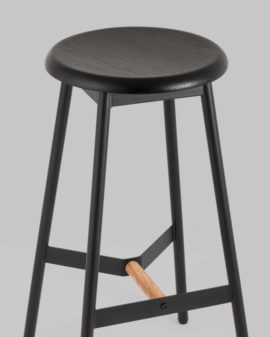 Стул барный Knobb черный каркас из металла и массива дерева