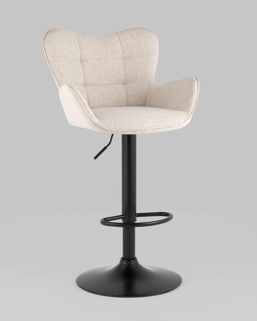 Стул барный Гранд серо-бежевый ткань, со спинкой, основание черное металл