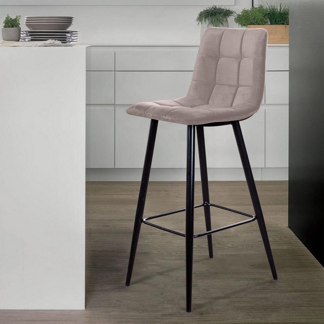 Стул барный Top concept Стул барный Уно, бархат пепельно-бежевый 25 / чёрный конус арт. 7942