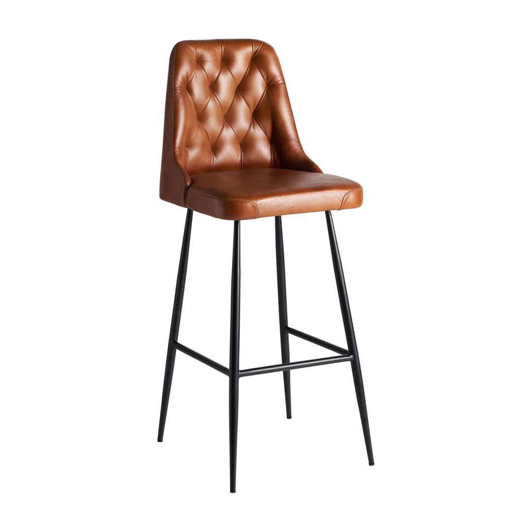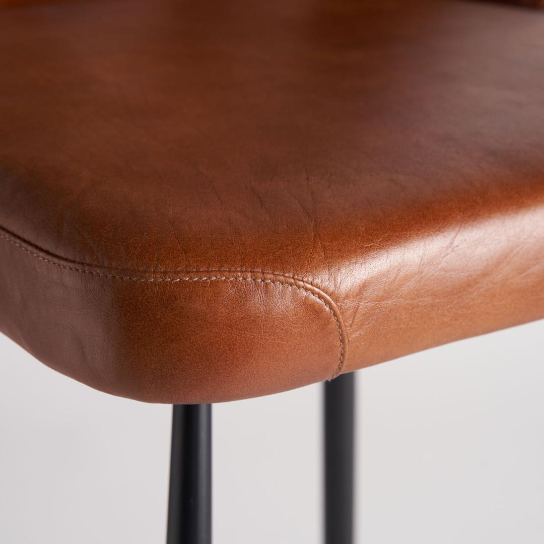 Табурет dexter, коричневый цвет, винтажный стиль. Изготовлен из железа в сочетании с кожей и поролоном. Съемное изделие.