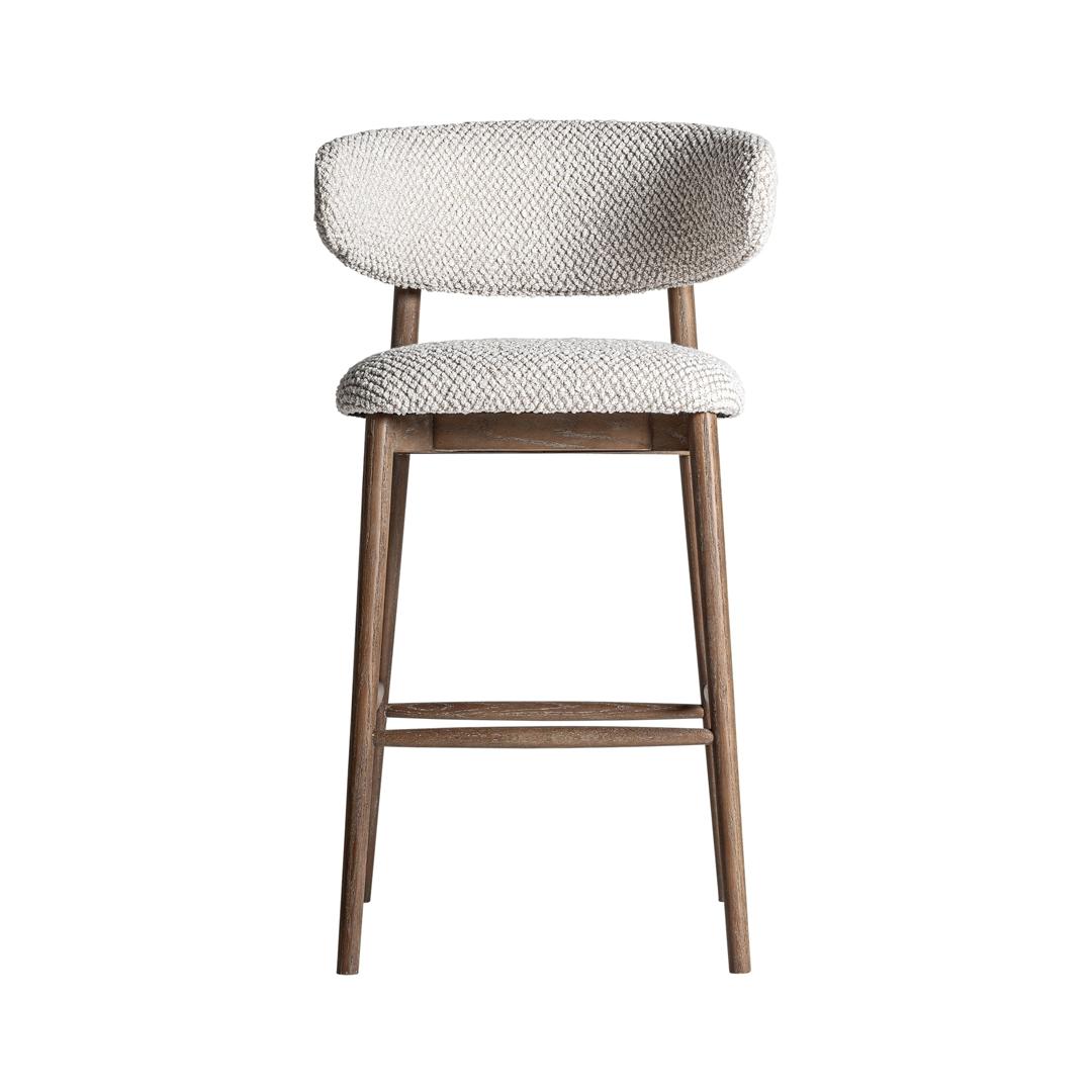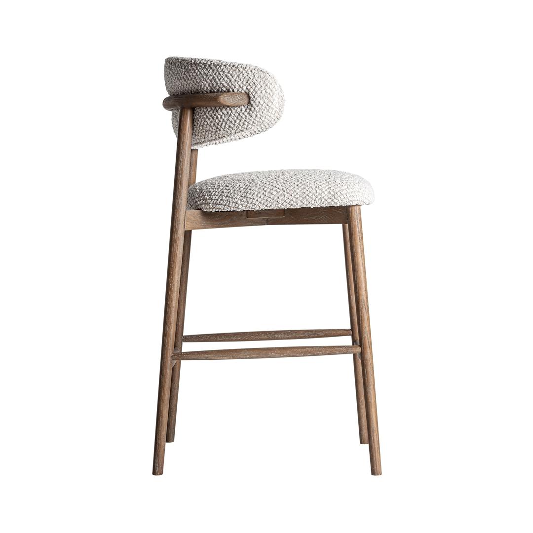 Табурет в современном стиле. Изготовлен из древесины ясеня коричневого цвета в сочетании с полиэстером бежевого цвета. Ширина: 58 см, Глубина: 56 см, Высота: 105 см