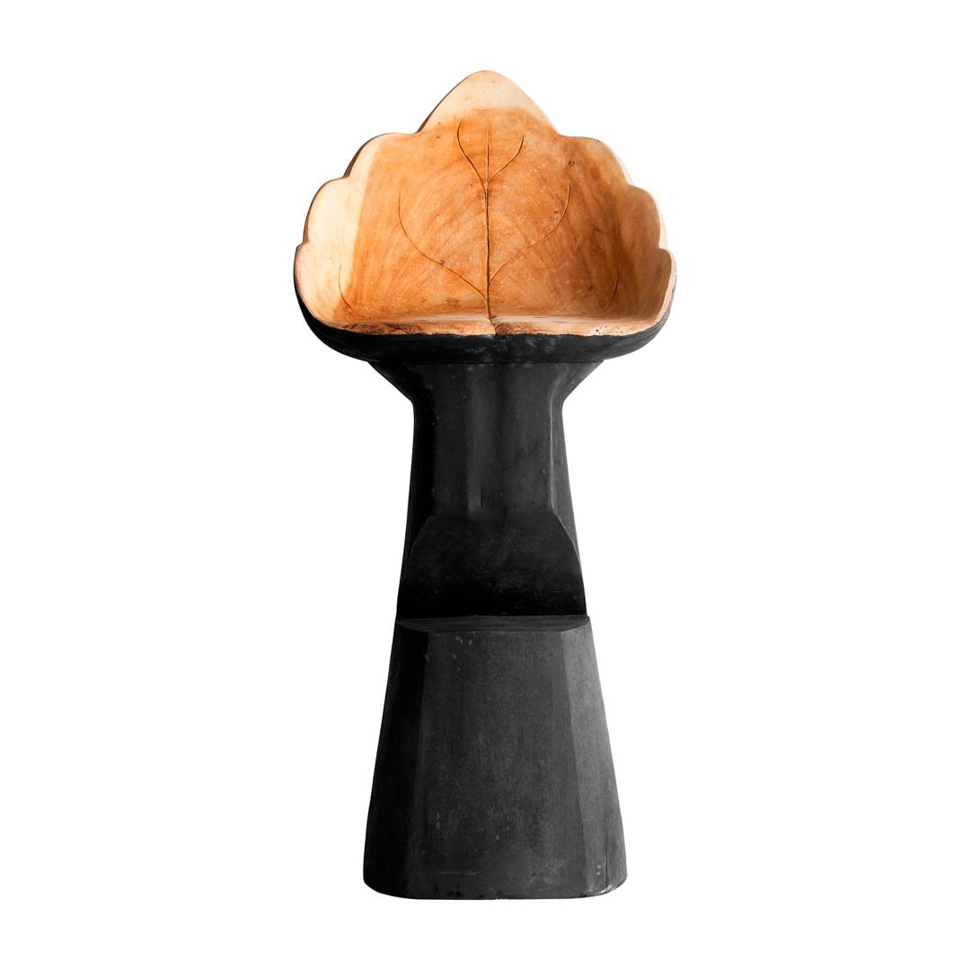 Табурет-HOJA, состаренный черный/натуральный цвет, в этническом стиле. Изготовлен из древесины суар.