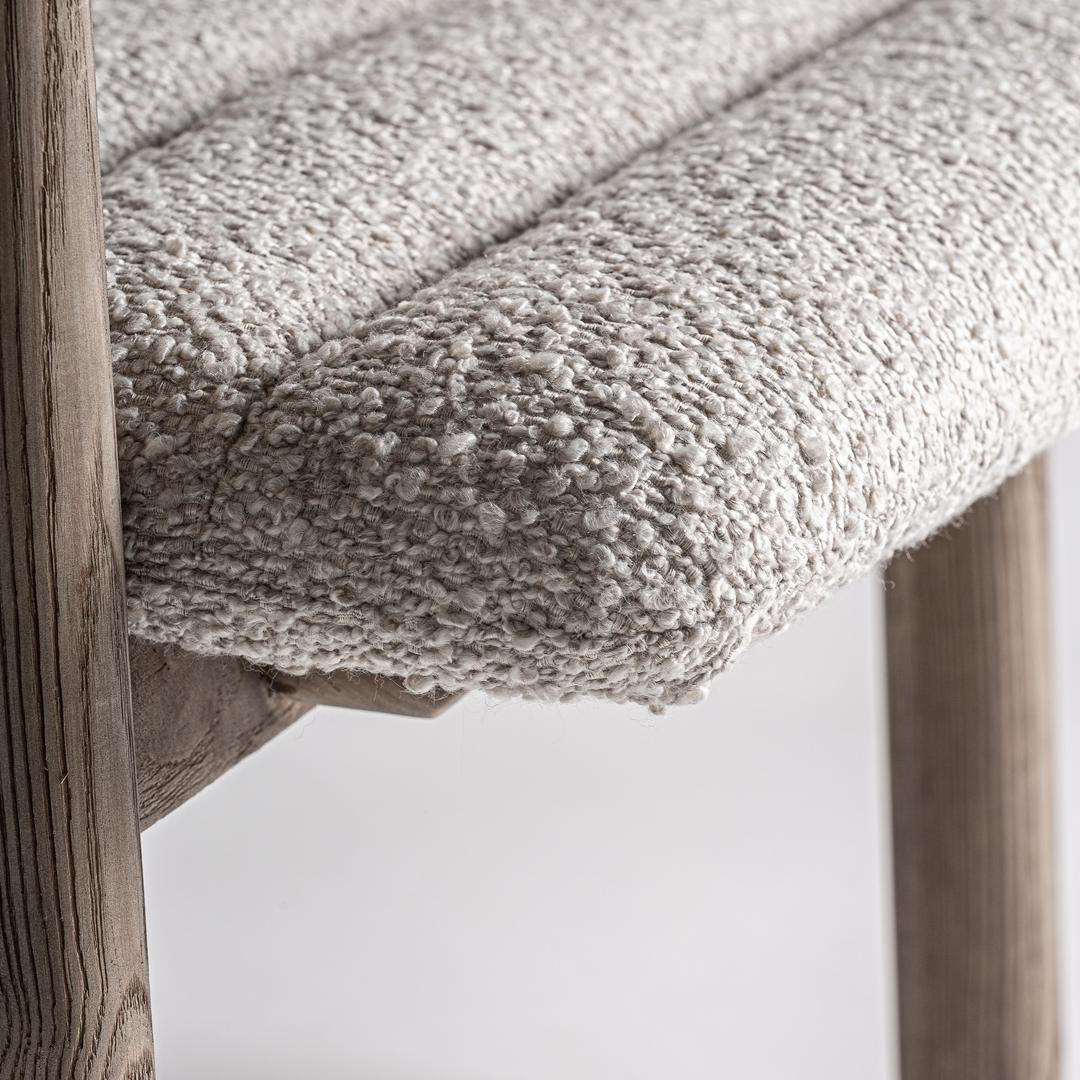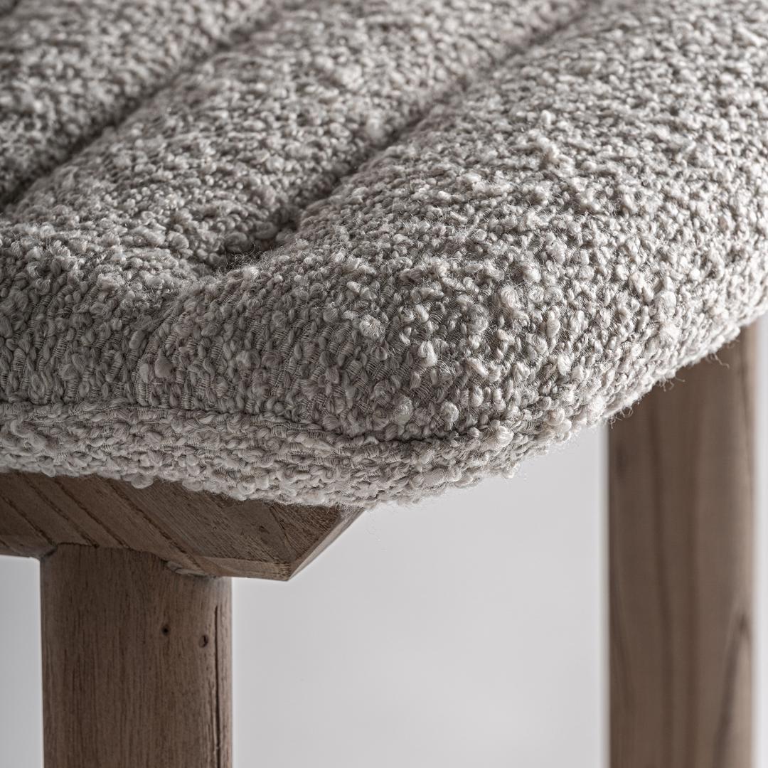 Современный табурет. Изготовлен из светло-коричневого дуба в сочетании с бежевым полиэстером.