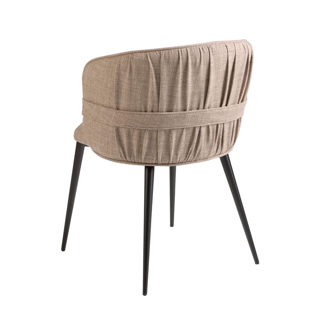 Стул 4146/DC917A от фабрики Angel Cerda – акцентированная спинка и практичная тканевая обивка. Стул 4146/DC917A – это удобная и современная модель для любого случая. Его тканевая обивка изящно подчеркнута оригинальной сборкой сзади, что делает общий вид незаурядным. А утонченные стальные ножки добавляют изящества, не в ущерб прочности. Такой предмет интерьера добавит стиль вашему пространству, обеспечит бескомпромиссный комфорт. Стул сборный. Каркас изготовлен из прочной сосновой древесины. Наполнитель синтетический, со средней степенью жесткости. Он упругий, возвращает прежнюю форму после давления. Тканевая обивка бежевого цвета, с высокой степенью износостойкости и защитной пропиткой от пятен. Ножки трубчатые, с заужением к низу. Они металлические с черным матовым покрытием. Для устойчивости и защиты напольного покрытия от повреждений, установлены специальные наконечники. Размеры стула: ширина – 58 см, высота – 77 см, глубина – 58 см Вес изделия – 11 кг. Потребуется небольшая сборка. Стул предназначен только для эксплуатации в помещении. Чистку сиденья необходимо делать деликатным способом, не используя абразивы и отбеливатели.
