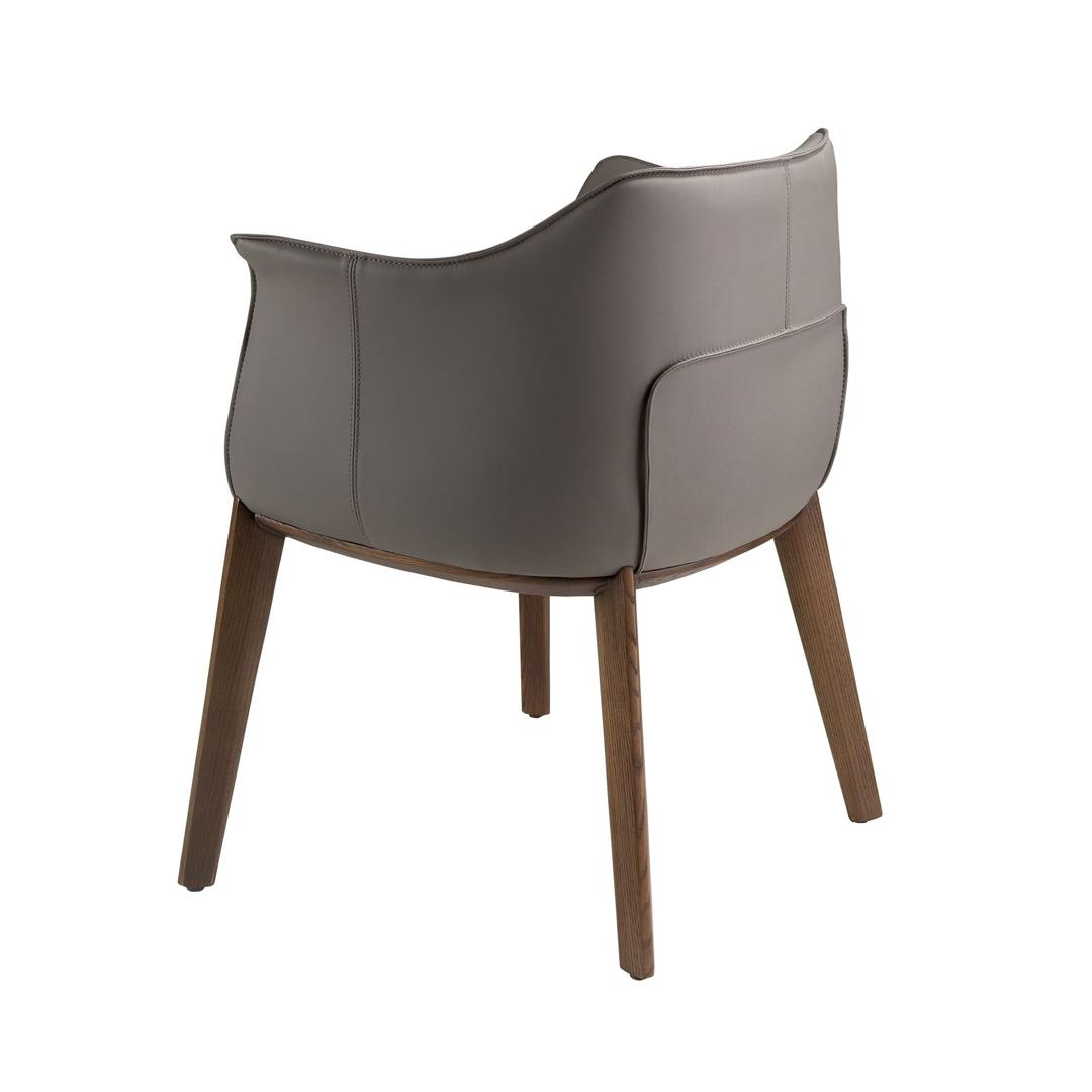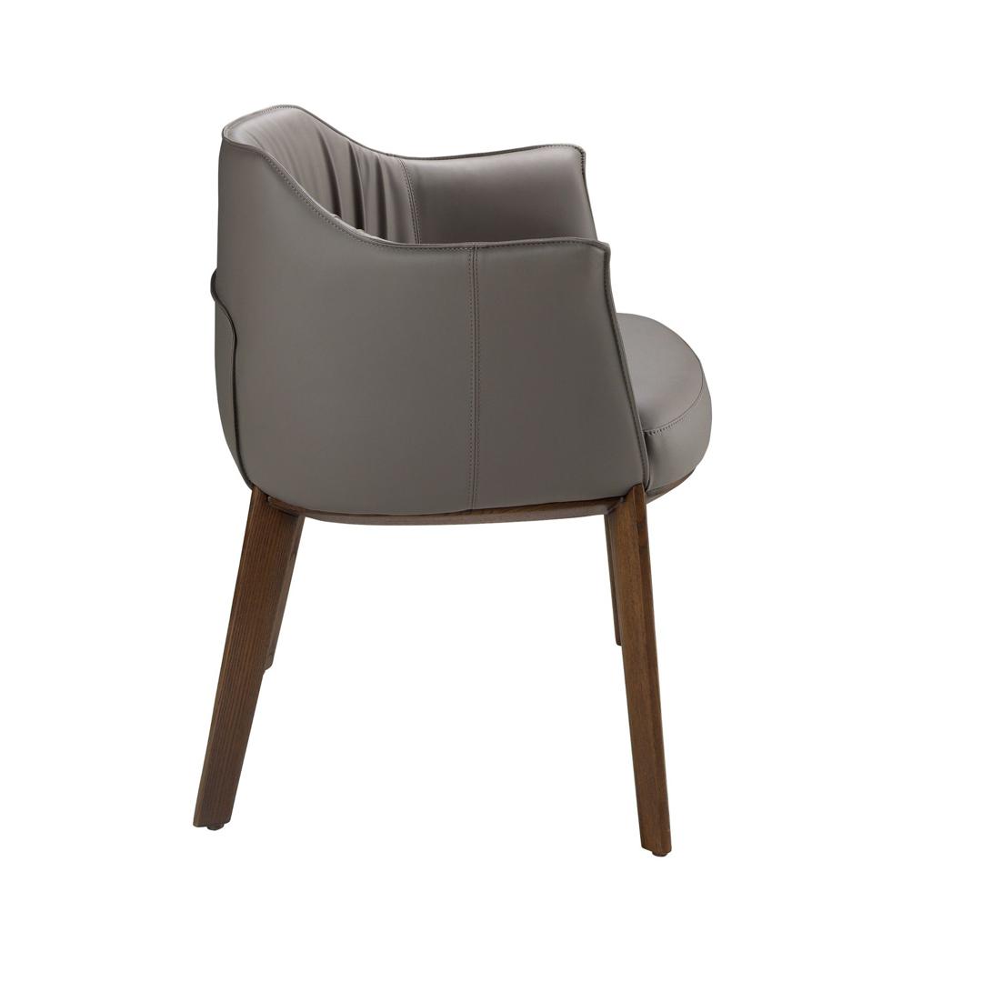 Стул с подлокотниками в современном дизайне с сиденьем и спинкой, обитыми серой кожзаменителем. Его деревянные ножки цвета ореха в авангардном, но вневременном стиле сделают его обязательным для вашей кухни или столовой. Этот стул от Angel Cerdá сочетает в себе уникальный и индивидуальный стиль бренда, а также максимальный комфорт и устойчивость благодаря высокому качеству обивки и оригинальной конструкции ножек.