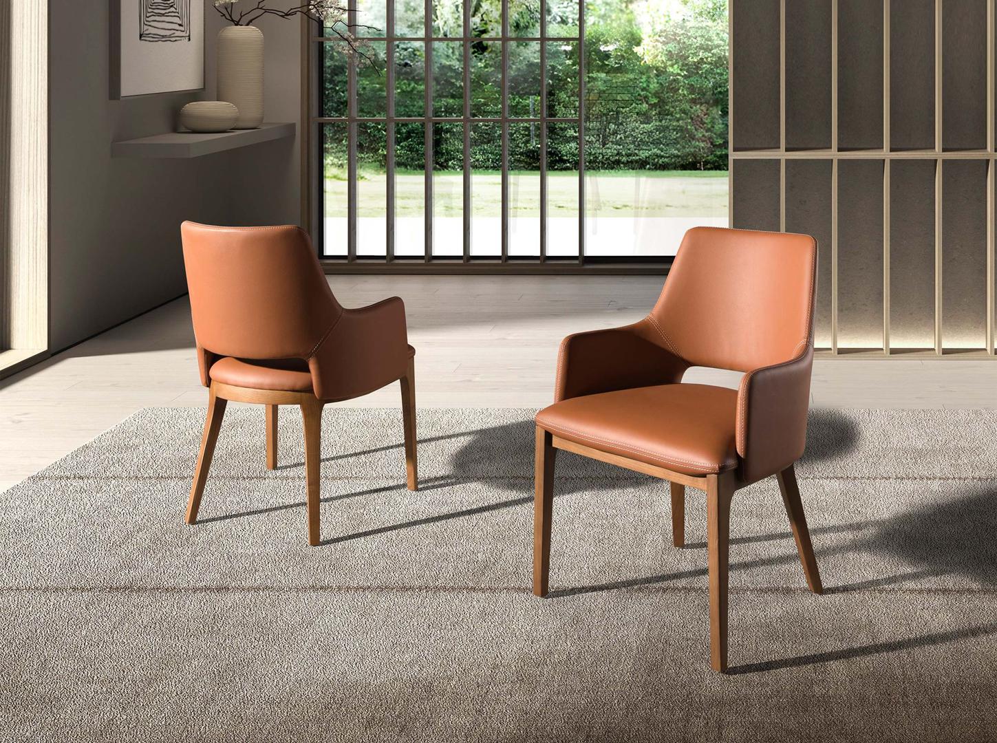 Стул с подлокотниками в современном дизайне с сиденьем и спинкой, обитыми коричневой кожзаменителем. Его натуральные деревянные ножки, шпонированные орехом, с авангардным, но неподвластным времени стилем сделают его обязательным для вашей кухни или столовой. Этот стул от Angel Cerdá сочетает в себе уникальный и индивидуальный стиль бренда, а также максимальный комфорт и устойчивость благодаря высокому качеству обивки и оригинальной конструкции ножек.