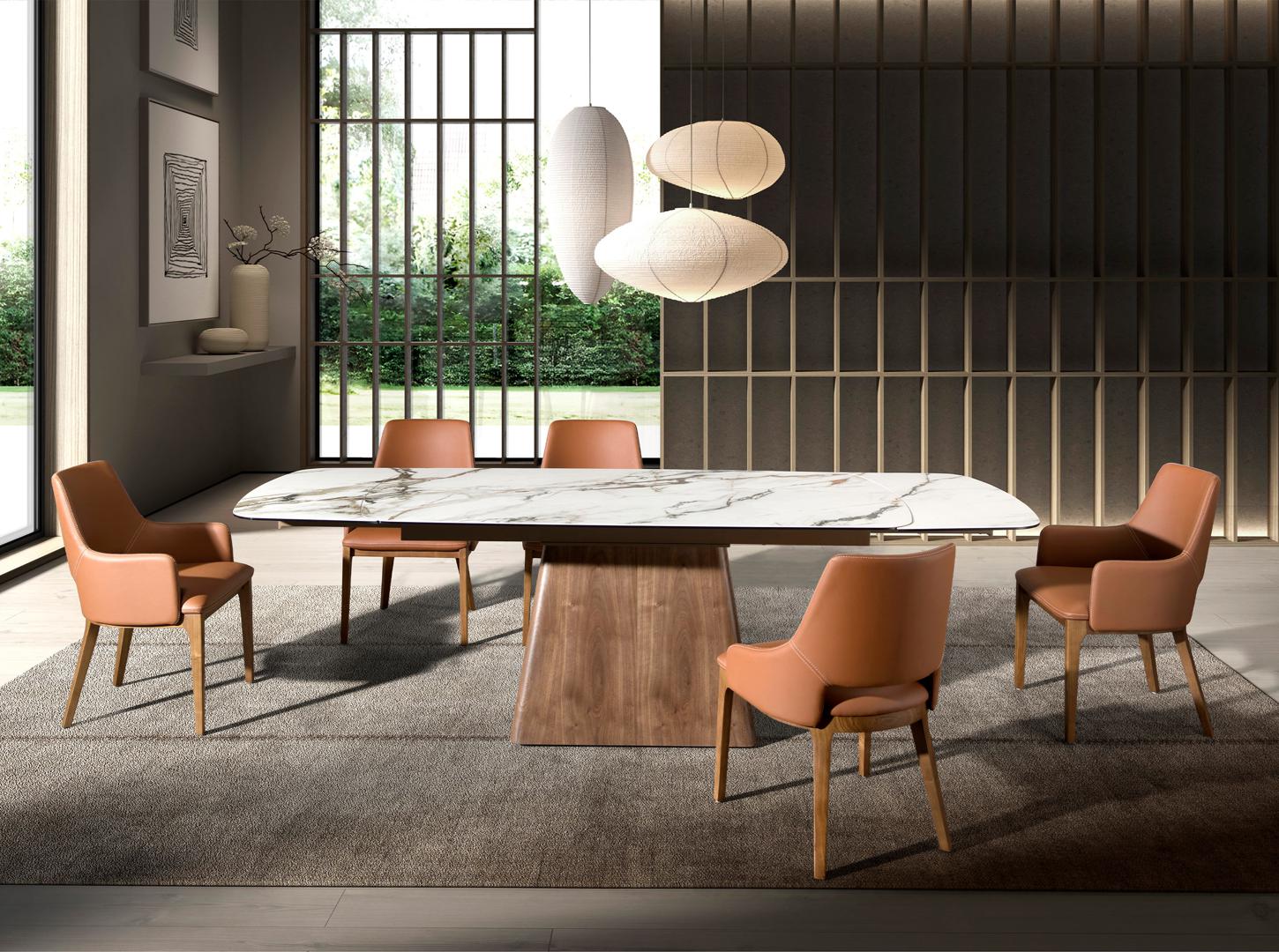 Современный дизайн стула с сиденьем и спинкой, обитыми коричневой кожзаменителем. Его натуральные деревянные ножки из орехового шпона с авангардным, но неподвластным времени стилем сделают его обязательным для вашей кухни или столовой. Этот стул от Angel Cerdá сочетает в себе уникальный и индивидуальный стиль бренда, а также максимальный комфорт и устойчивость благодаря высокому качеству обивки и оригинальной конструкции ножек.