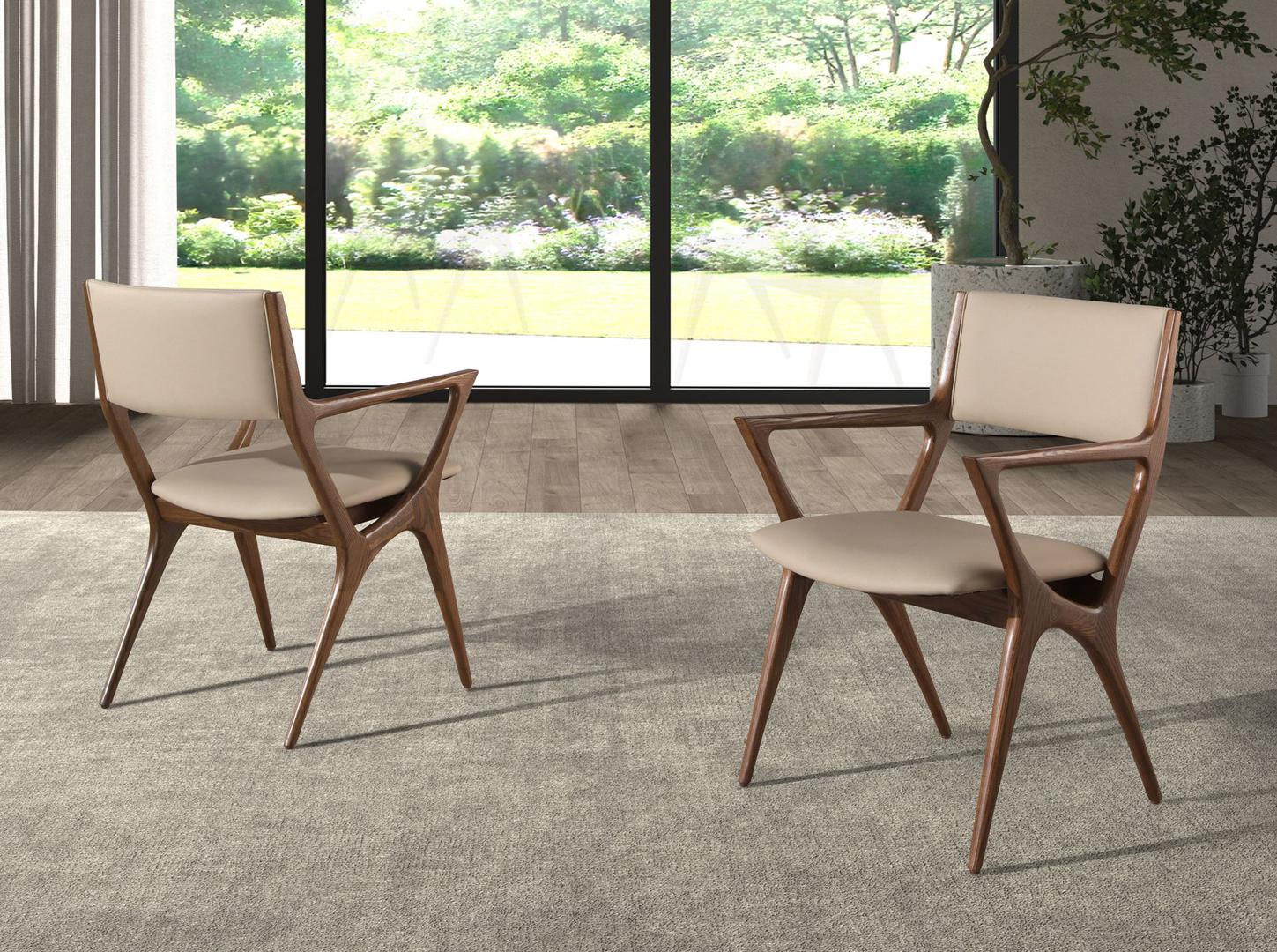 Стул с подлокотниками в современном дизайне, с сиденьем и спинкой, обитыми кожзаменителем цвета норки. Его деревянные ножки орехового цвета в авангардном, но неподвластном времени стиле сделают его незаменимым предметом мебели для вашей кухни или столовой. Этот стул от Angel Cerdá сочетает в себе уникальный и индивидуальный стиль бренда, а также максимальный комфорт и устойчивость благодаря высокому качеству обивки и оригинальной конструкции ножек.