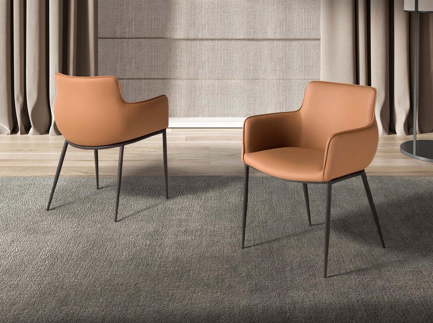 Стул с подлокотниками современного дизайна, сиденье и спинка которого обиты коричневой искусственной кожей. Ножки из нержавеющей стали, окрашенные чёрной эпоксидной смолой, одновременно авангардны и неподвластны времени, что делает его незаменимым предметом мебели для вашей кухни или столовой. Этот стул от Angel Cerdá сочетает в себе уникальный и индивидуальный стиль бренда с максимальным комфортом и устойчивостью благодаря высококачественной обивке и оригинальной конструкции ножек.