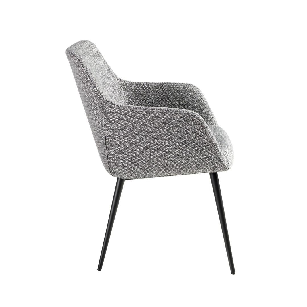 Современный дизайнерский стул с подлокотниками, сиденьем и спинкой, обитыми серой тканью. Его ножки из нержавеющей стали, окрашенные черной эпоксидной смолой, одновременно авангардны и вневременны, что делает его незаменимым элементом вашей кухни или столовой. Этот стул от Angel Cerdá сочетает в себе уникальный и индивидуальный стиль бренда с максимальным комфортом и устойчивостью благодаря высокому качеству обивки и оригинальной конструкции ножек.