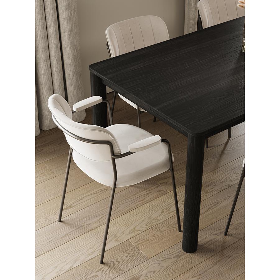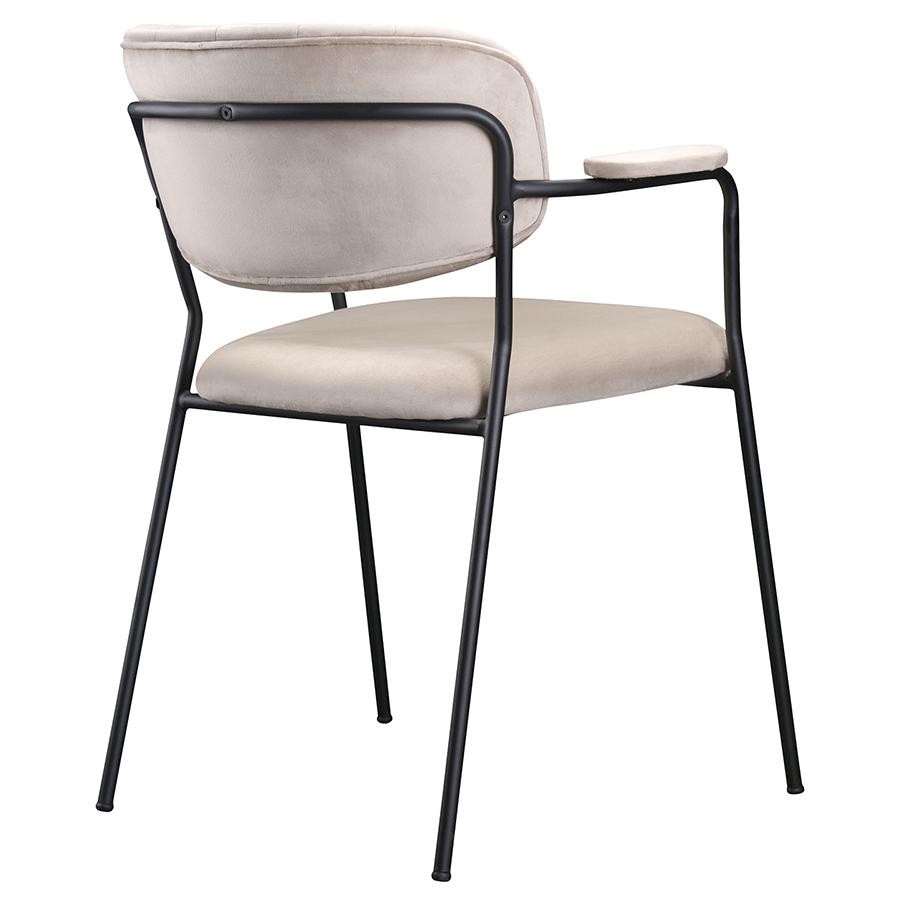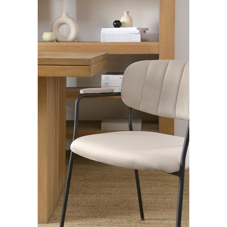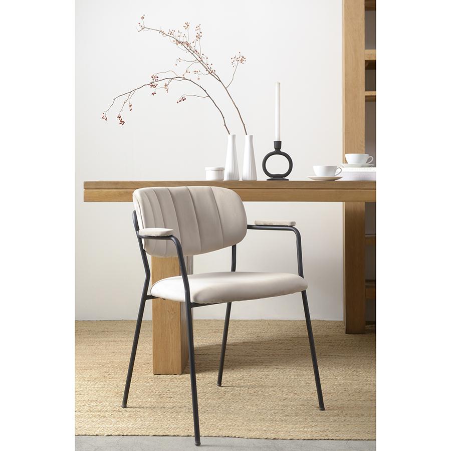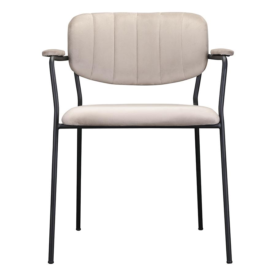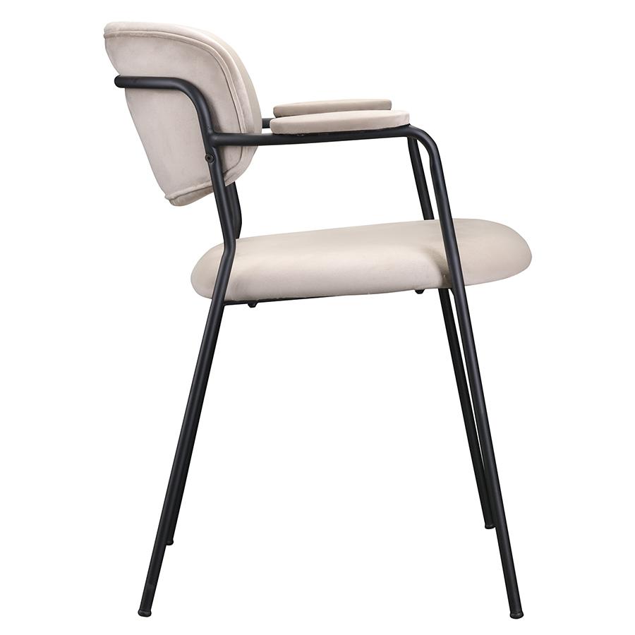 Стул Eirill с обивкой из мягкого, бархатистого велюра смотрится стильно и благородно. Материал приятный на ощупь, износостойкий и нетребовательный в уходе. Комфорт при сидении достигается за счет широкой, полукруглой спинки, глубокой посадки и высоких подлокотников с мягкими накладками. Плавные формы и декоративная строчка делают дизайн элегантным. Практичность и долговечность мебели обеспечивает прочный и надежный железный каркас. Модель органично вписывается в интерьер, оформленный в скандинавском стиле, эклектика, фьюжн, неоклассика и др. Материалы: 100% полиэстер, фанера, железо, пенополиуретан. Размеры: 59x53x77 см. Высота сиденья: 48 см. Ширина сиденья: 45 см. Глубина сиденья: 44 см. Высота спинки: 30 см. Ширина спинки: 40 см. Максимальная нагрузка: 120 кг. Цвет: серо-бежевый. Рекомендуется регулярно пылесосить мебель с помощью специальной насадки. Загрязнения можно удалять при помощи мягкой влажной ткани или губки с мыльным раствором воды.
