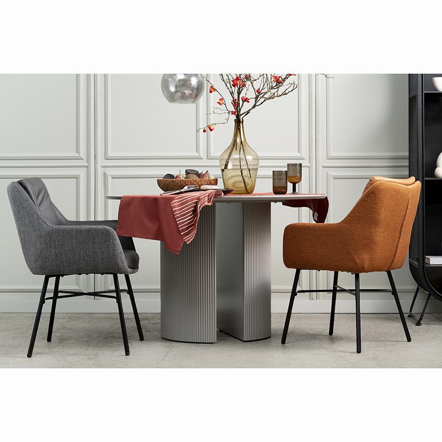 Стильный и удобный стул Allar станет идеальным дополнением вашей кухни, столовой или зоны отдыха в квартире и загородном доме. Этот предмет мебели от известного дизайнерского бренда Bergenson Bjorn воплощает современные тенденции, великолепно сочетаясь с различными вариантами отделки. Особенности конструкции модели обеспечивают комфортную посадку и поддержку спины. Сиденье с мягким пенополиуретановым наполнителем и наличие приспинной подушки создают условия для длительного использования без чувства усталости. Внутри обивка выполнена из экокожи, снаружи стул отделан рогожкой. Такое сочетание материалов делает дизайн интересным, а мебель практичной и долговечной. Ножки из прочной стали гарантируют конструкции надежность и устойчивость. Благодаря лаконичным формам и нейтральному оттенку стул Allar гармонично вписывается в большинство популярных стилевых направлений, среди которых неоклассика, лофт, фьюжн, сканди, хай-тек и другие. Материалы: 100% полиэстер, полиуретан, фанера, пенополиуретан, сталь. Размеры: 58х52х85 см. Высота сиденья: 47,5 см. Высота подушки сиденья: 10 см. Ширина сиденья: 45 см. Глубина сиденья: 46 см. Высота спинки: 42 см. Ширина спинки: 42 см. Максимальная нагрузка: 120 кг. Цвет: коричневый. Любые загрязнения с обивки из экокожи рекомендуется убирать сразу при помощи влажной ткани. Засохшую грязь требуется сначала размочить, после чего удалить мягким материалом. Пятна с обивки из рогожки можно убирать губкой с мыльным раствором воды. Запрещается применение жестких щеток, абразивов и агрессивной бытовой химии.