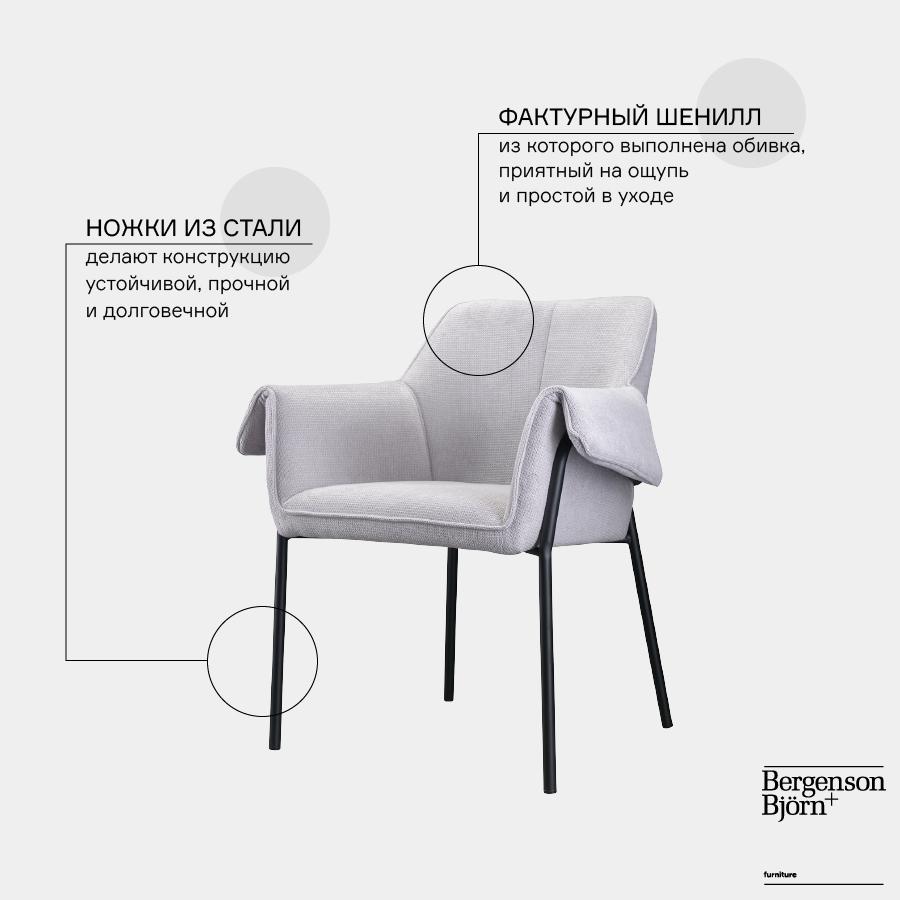 Стул Bergenson Bjorn Стул aline, шенилл, светло-серый арт. FH-ALN-ARMCH-PL-LGR