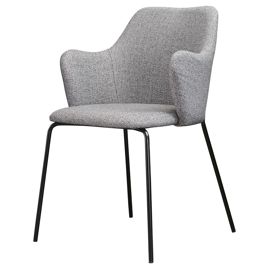 Стул Dwight приятного светло-серого оттенка великолепно дополнит обеденную зону на кухне или в столовой, украсит пространство гостиной, спальни и рабочего кабинета. За счет минималистичного дизайна модель актуальна для большинства интерьерных стилей. Конструкция надежна, прочна и долговечна. Комфорт при сидении достигается за счет глубокой посадки и широкой спинки, плавно переходящей в подлокотники. Ножки из железа расположены под определенным углом для хорошей устойчивости. Обивка из рогожки обладает высокими показателями практичности – не скатывается, не протирается, простая в уходе и долго сохраняет привлекательный вид. Материалы: железо, фанера, 100% полиэстер, пенополиуретан. Высота сиденья: 45 см. Ширина сиденья: 47 см. Глубина сиденья: 44,5 см. Высота спинки: 40 см. Ширина спинки: 44 см. Высота подлокотников: 21,5 см. Максимальная нагрузка: 120 кг. Цвет: светло-серый. Истираемость ткани по шкале Мартиндейла: 40000. Цветоустойчивость: 4-5 единиц. Плотность ткани: 370 GSM. Рекомендуется регулярно пылесосить мебель с помощью специальной насадки. Образовавшиеся пятна можно удалять губкой или салфеткой с мыльным раствором воды. Запрещается использовать абразивные материалы и агрессивную бытовую химию.