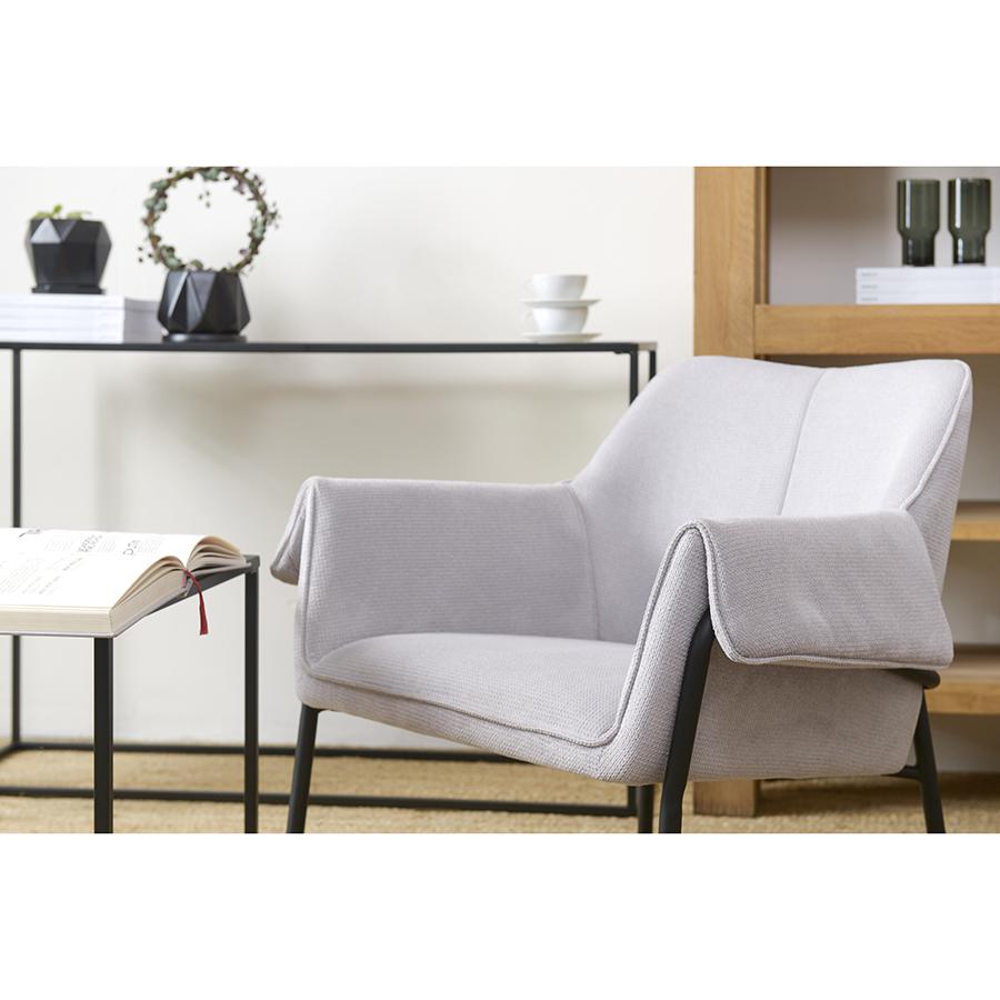 Лаунж-кресло Aline с обивкой из фактурного шенилла выглядит уютно и в то же время благородно. Материал приятный на ощупь и простой в уходе. Комфорт при сидении достигается за счет высокой наклонной спинки, глубокой посадки и удобных мягких подлокотников. Светлая мебель с лаконичным силуэтом идеально вписывается в интерьер гостиной, рабочего кабинета или спальни, оформленных в скандинавском стиле, лофт, эклектика, фьюжн, неоклассика и др. Материалы: 93% полиэстер, 7% нейлон, фанера, железо, поролон. Размеры: 76х61х75 см. Максимальная нагрузка: 120 кг. Истираемость ткани по шкале Мартиндейла ?40000. Высота сиденья: 43 см. Ширина сиденья: 45 см. Глубина сиденья: 49 см. Высота спинки: 37 см. Ширина спинки: 42 см Цвет: светло-серый. Рекомендуется регулярно пылесосить мебель с помощью специальной насадки. Загрязнения можно удалять мягкой губкой или салфеткой с мыльным раствором воды.