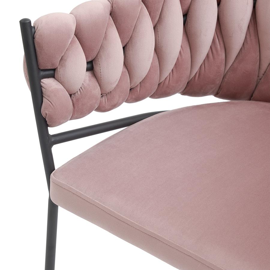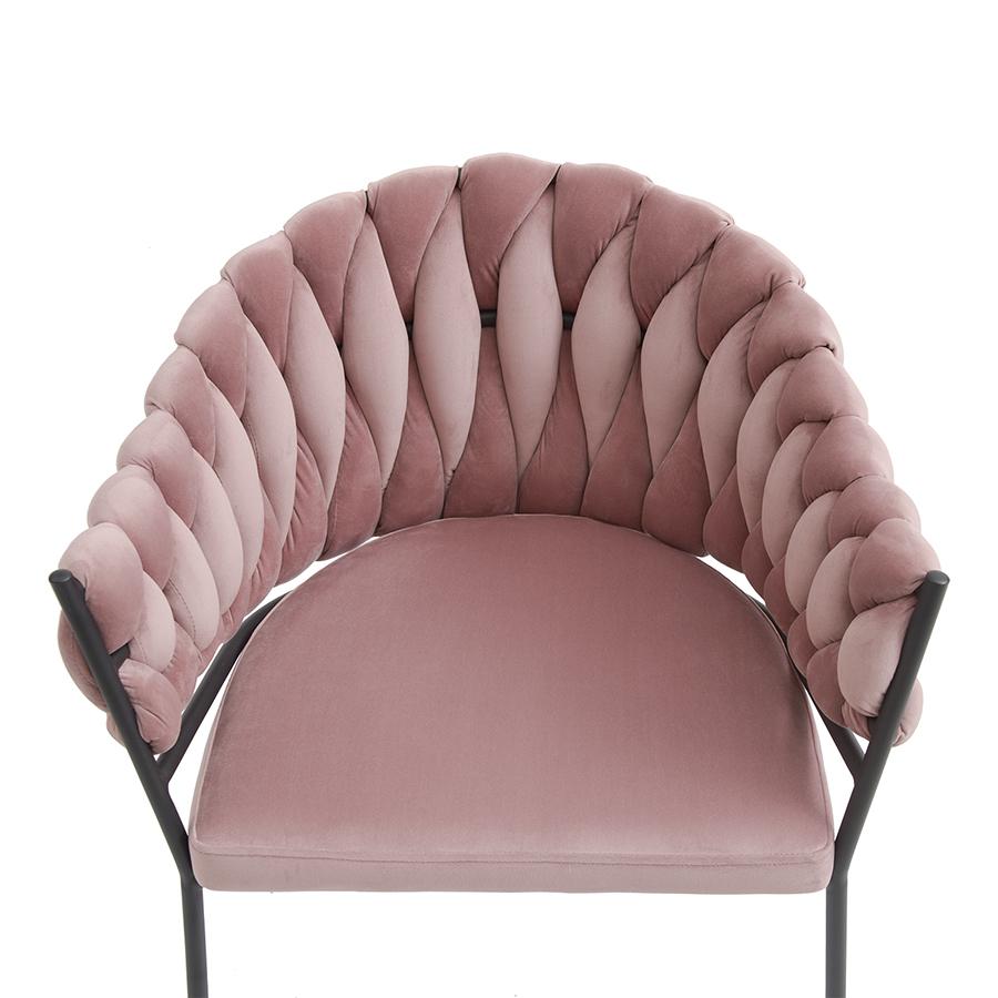 Кресло Lind поможет сделать акцент на стильном дизайне интерьера. Главная особенность модели – оригинальная плетеная спинка. Бархатистый, приятный на ощупь велюр дарит тактильный комфорт и смягчает строгие формы прочного железного каркаса. За счет высоких ножек модель выглядит утонченно, благодаря чему не перегружает пространство. Сиденье с наполнителем из пенополиуретана, глубокая посадка и наличие подлокотников обеспечивают комфорт во время отдыха. Мебель в спокойных тонах станет оптимальным вариантом для спальни, гостиной, кабинета, оформленных в любой цветовой гамме. Материалы: 87% полиэстер, 10% вискоза, 3% нейлон, фанера, железо, пенополиуретан. Размеры: 60х53х77 см. Высота сиденья: 48 см. Ширина сиденья: 45 см. Глубина сиденья: 43 см. Высота спинки: 31 см. Ширина спинки: 36 см. Максимальная нагрузка: 120 кг. Цвет: розовый. Рекомендуется регулярно пылесосить мебель с помощью специальной насадки. Загрязнения можно удалять при помощи мягкой влажной ткани.