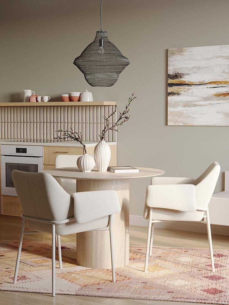 Стул Aline с обивкой из фактурного шенилла выглядит уютно и в то же время благородно. Материал приятный на ощупь и простой в уходе. Комфорт во время отдыха на стуле достигается за счет удобного сиденья с наполнителем из пенополиуретана, высокой наклонной спинки, глубокой посадки и мягких подлокотников. Светлая мебель с лаконичным силуэтом идеально вписывается в интерьер гостиной, рабочего кабинета или спальни, оформленных в скандинавском стиле, лофт, эклектика, фьюжн, неоклассика и др. Материалы: 93% полиэстер, 7% нейлон, фанера, железо, пенополиуретан. Размеры: 70x55x83 см. Максимальная нагрузка: 120 кг. Истираемость ткани по шкале Мартиндейла ?40000. Высота сиденья: 50 см. Ширина сиденья: 41 см. Глубина сиденья: 44 см. Высота спинки: 39 см. Ширина спинки: 42 см Цвет: серо-бежевый. Рекомендуется регулярно пылесосить мебель с помощью специальной насадки. Загрязнения можно удалять мягкой губкой или салфеткой с мыльным раствором воды.