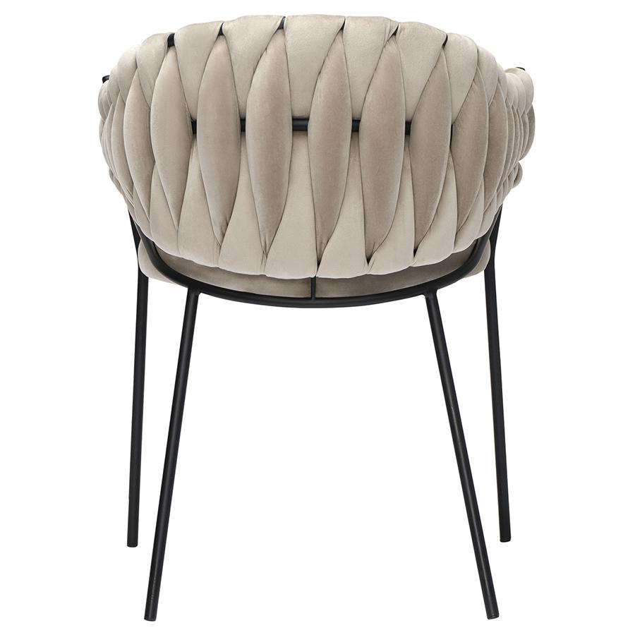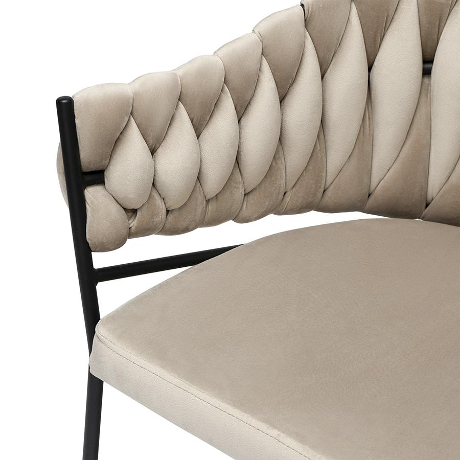 Кресло Lind поможет сделать акцент на стильном дизайне интерьера. Главная особенность модели – оригинальная плетеная спинка. Бархатистый, приятный на ощупь велюр дарит тактильный комфорт и смягчает строгие формы прочного железного каркаса. За счет высоких ножек модель выглядит утонченно, благодаря чему не перегружает пространство. Сиденье с наполнителем из пенополиуретана, глубокая посадка и наличие подлокотников обеспечивают комфорт во время отдыха. Мебель в спокойных тонах станет оптимальным вариантом для спальни, гостиной, кабинета, оформленных в любой цветовой гамме. Материалы: 87% полиэстер, 10% вискоза, 3% нейлон, фанера, железо, пенополиуретан. Размеры: 60х53х77 см. Высота сиденья: 48 см. Ширина сиденья: 45 см. Глубина сиденья: 43 см. Высота спинки: 31 см. Ширина спинки: 36 см. Максимальная нагрузка: 120 кг. Цвет: бежевый. Рекомендуется регулярно пылесосить мебель с помощью специальной насадки. Загрязнения можно удалять при помощи мягкой влажной ткани.