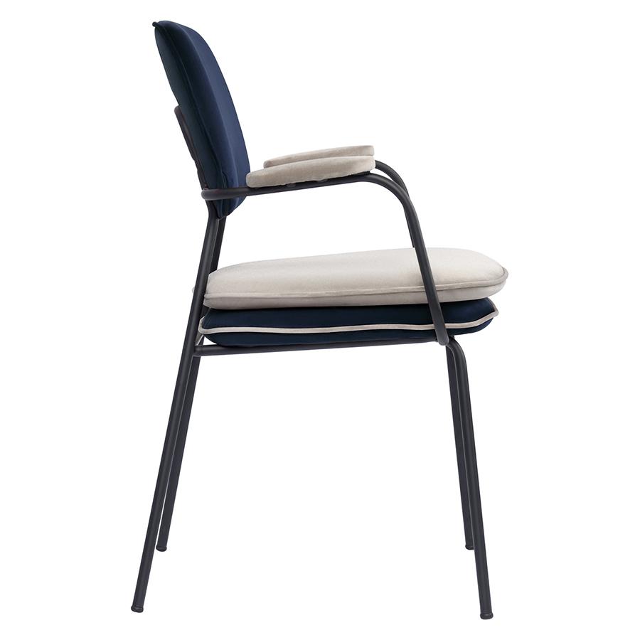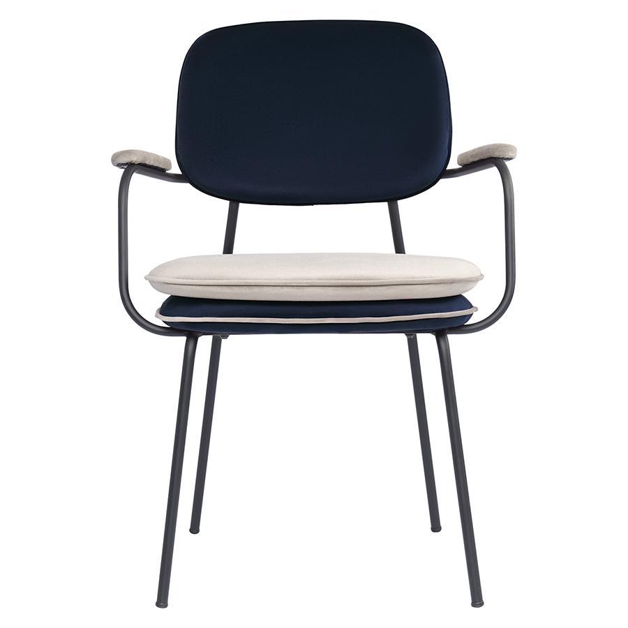Стул Bergenson Bjorn Стул с подлокотниками и контрастным кантом pea, велюр, темно-синий/бежевый арт. BB0000701