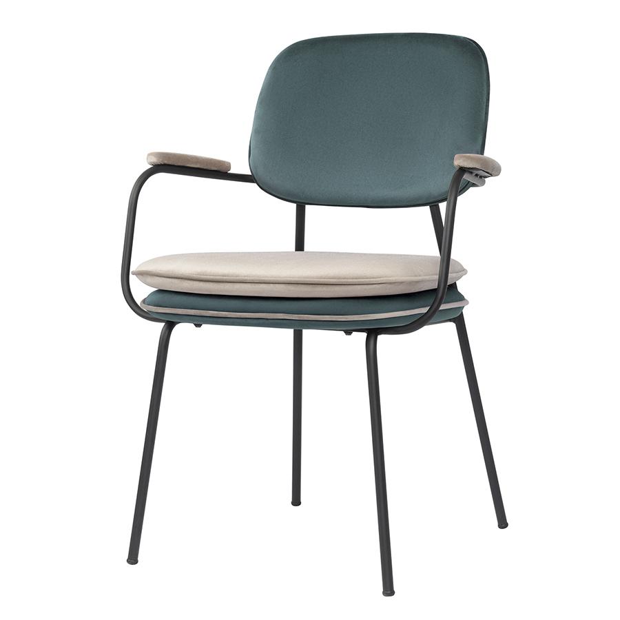 Стул Bergenson Bjorn Стул с подлокотниками и контрастным кантом pea, велюр, сине-зеленый/бежевый арт. BB0000699
