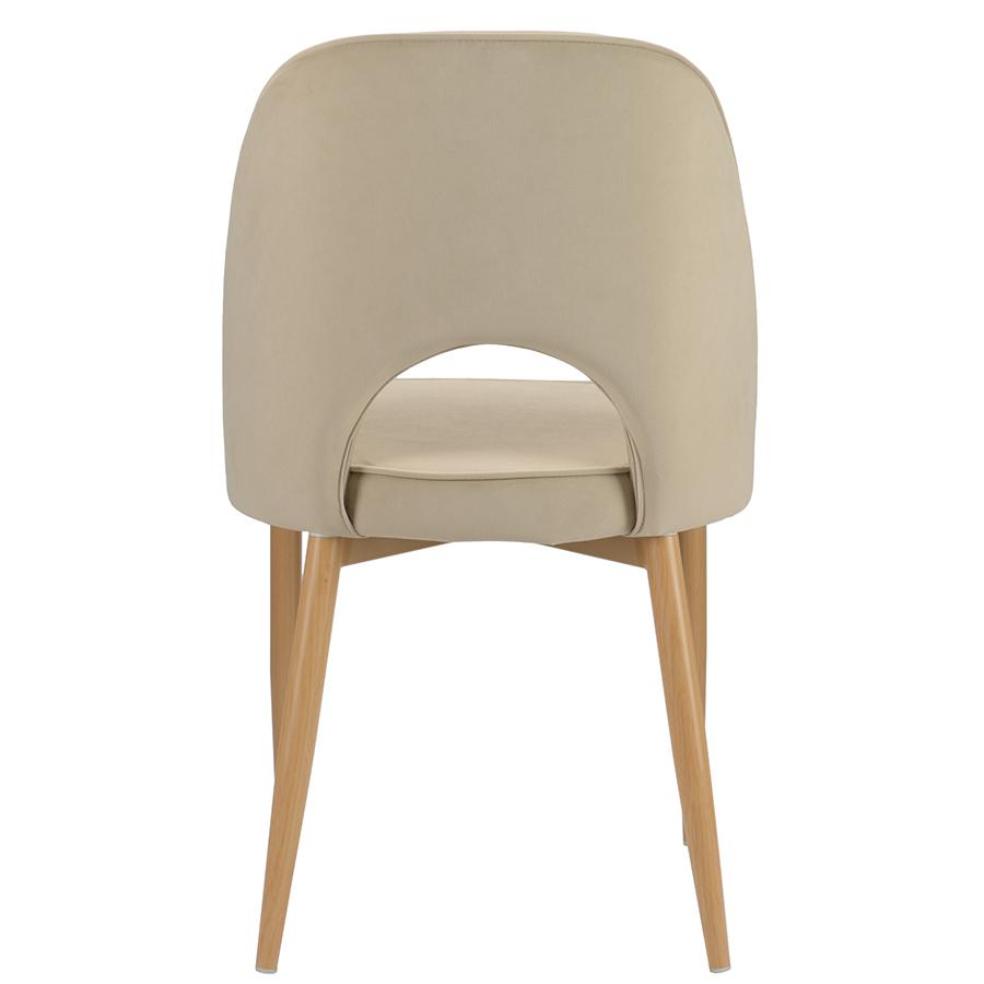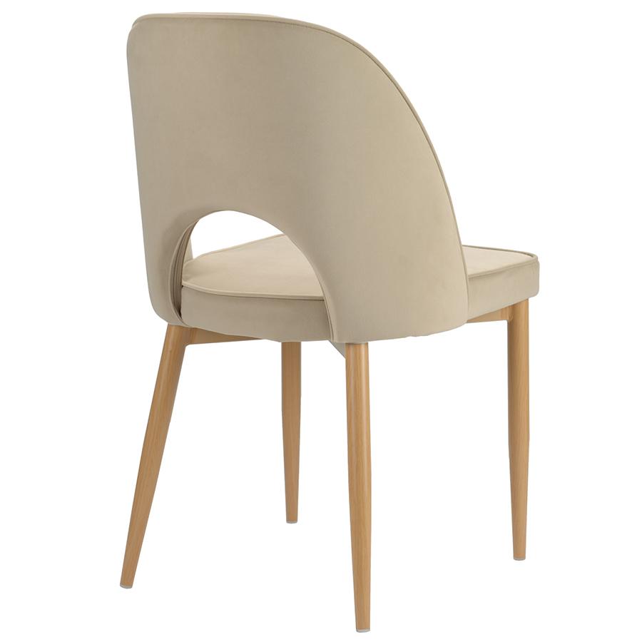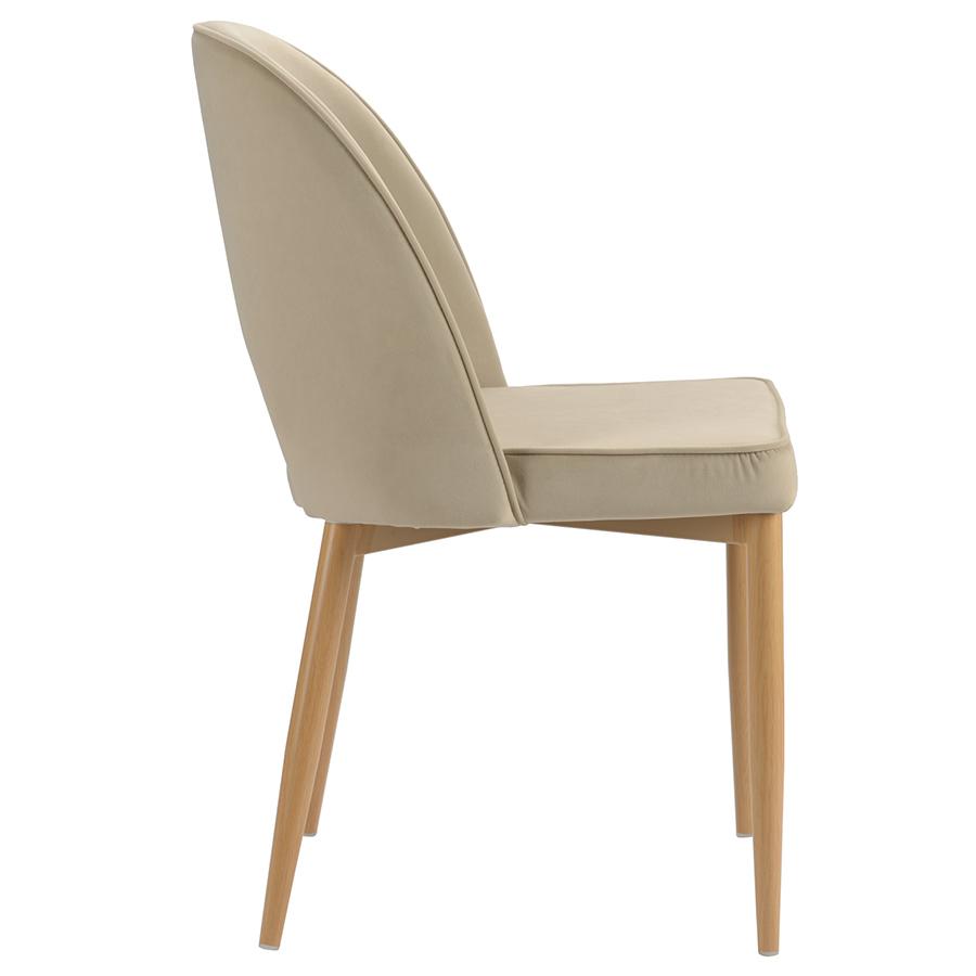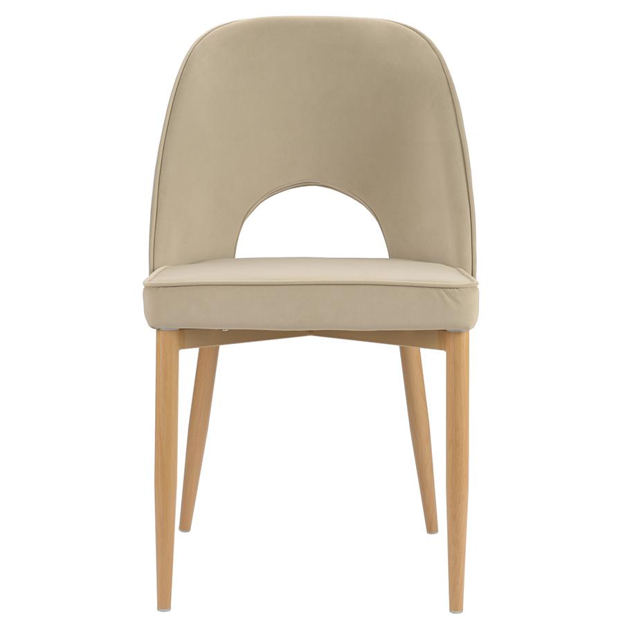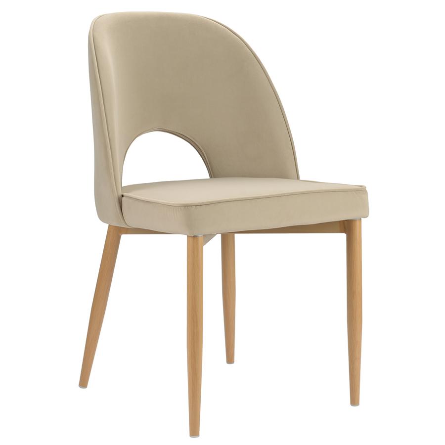 Удобный стул нейтрального бежевого цвета украсит столовую, гостиную или спальню. Конструкция устойчива, прочна и долговечна. Широкая спинка обеспечивает дополнительный комфорт. Материал обивки – качественный велюр, который не линяет и не протирается. Ножки выполнены из стали. Наполнитель – поролон. Максимальная нагрузка – 120 кг. Истираемость ткани по шкале Мартиндейла - 25000 Цветоустойчивость - 4-5 единиц Плотность ткани - 270 г/см3