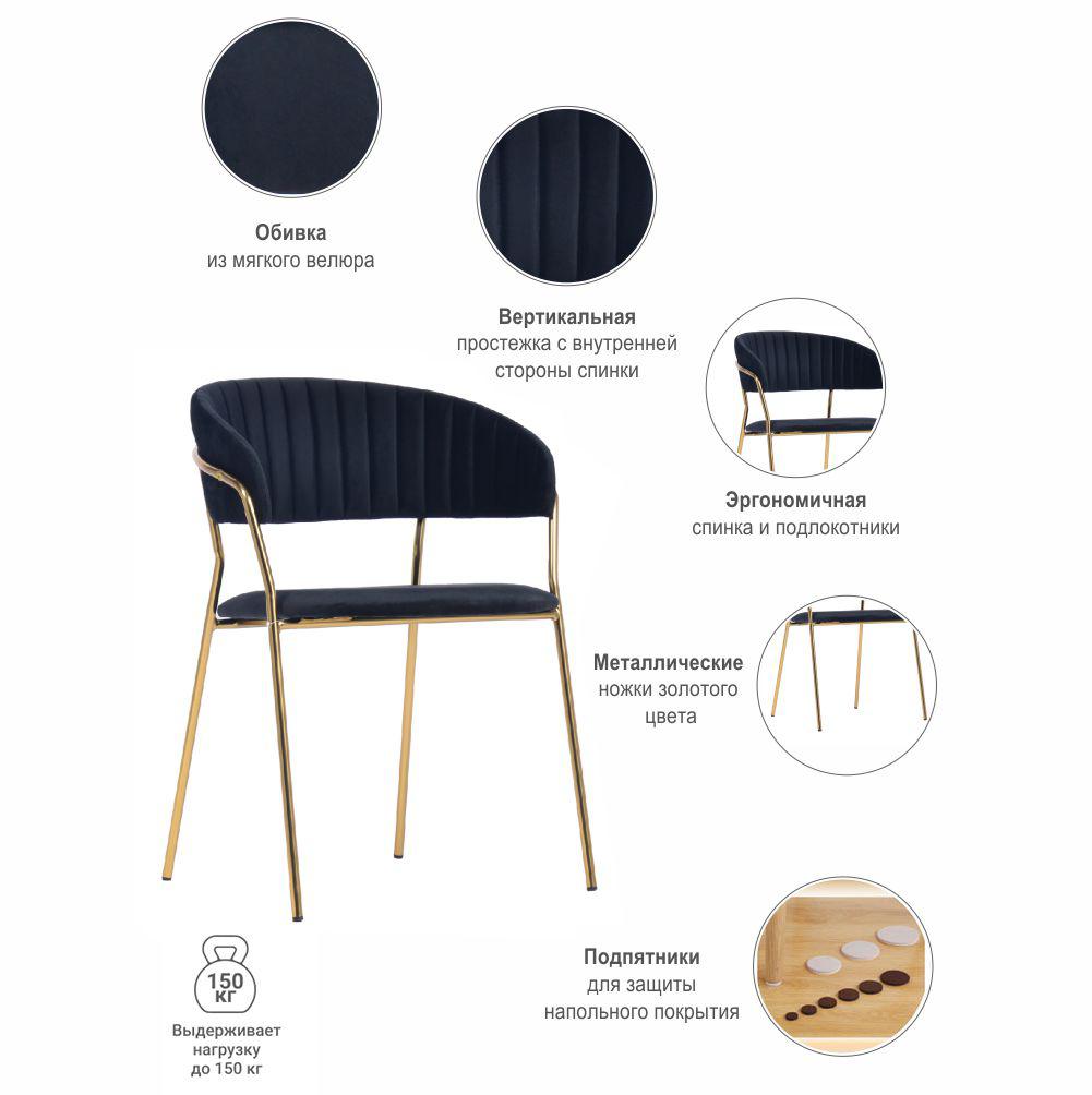 Комплект из 2-х стульев Turin черного цвета с золотыми ножками станет ярким акцентом для вашей столовой или гостиной. Чёрный велюр обивки придает модели роскошный вид и обеспечивает исключительный комфорт во время использования.