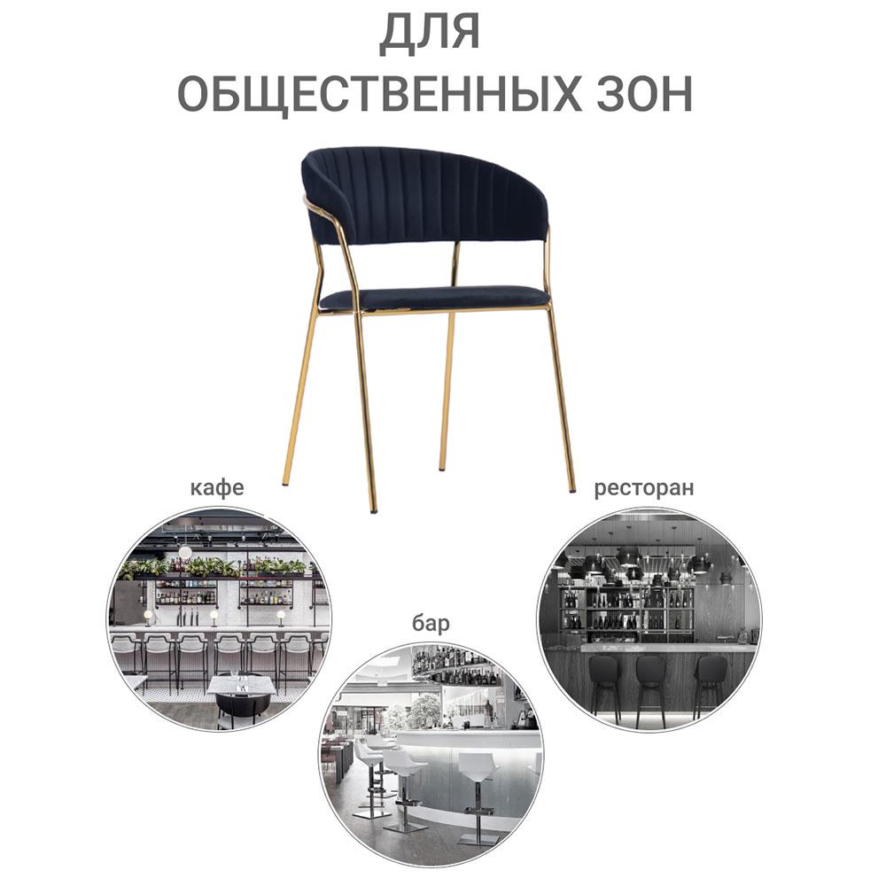 Элегантные золотые ножки из прочного металла создают эффектный контраст с сиденьем. Они придают конструкции визуальную легкость и повышенную устойчивость.