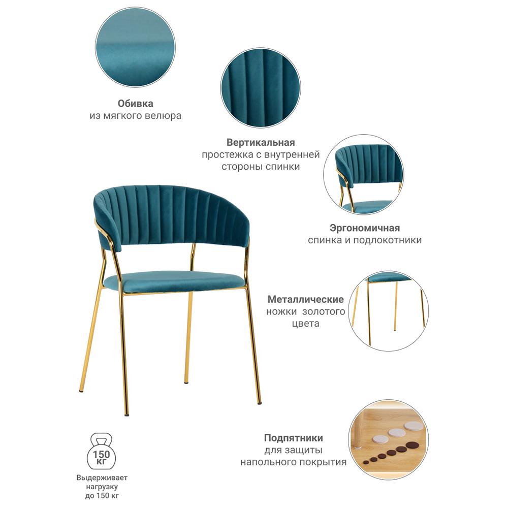 Стул Bradexhome Комплект из 2-х стульев Turin бирюзовый с золотыми ножками арт. FR 0160P