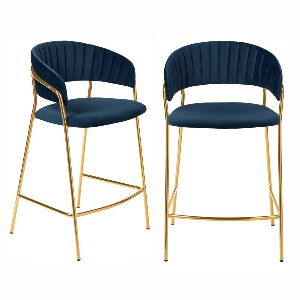 Стул Bradexhome Комплект из 2-х стульев полубарных Turin синий с золотыми ножками арт. FR 0909P