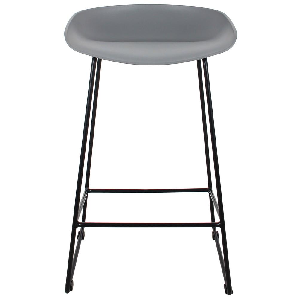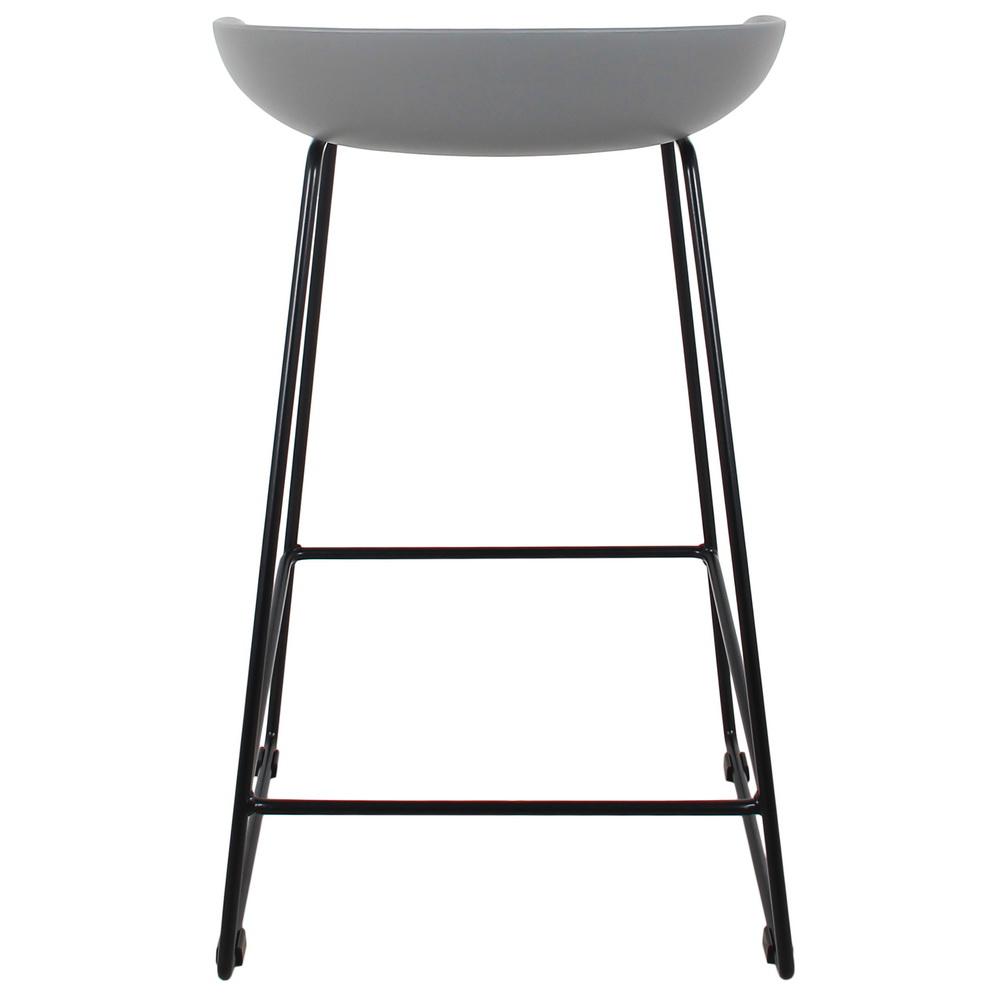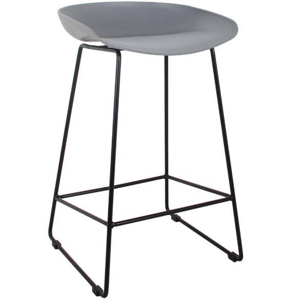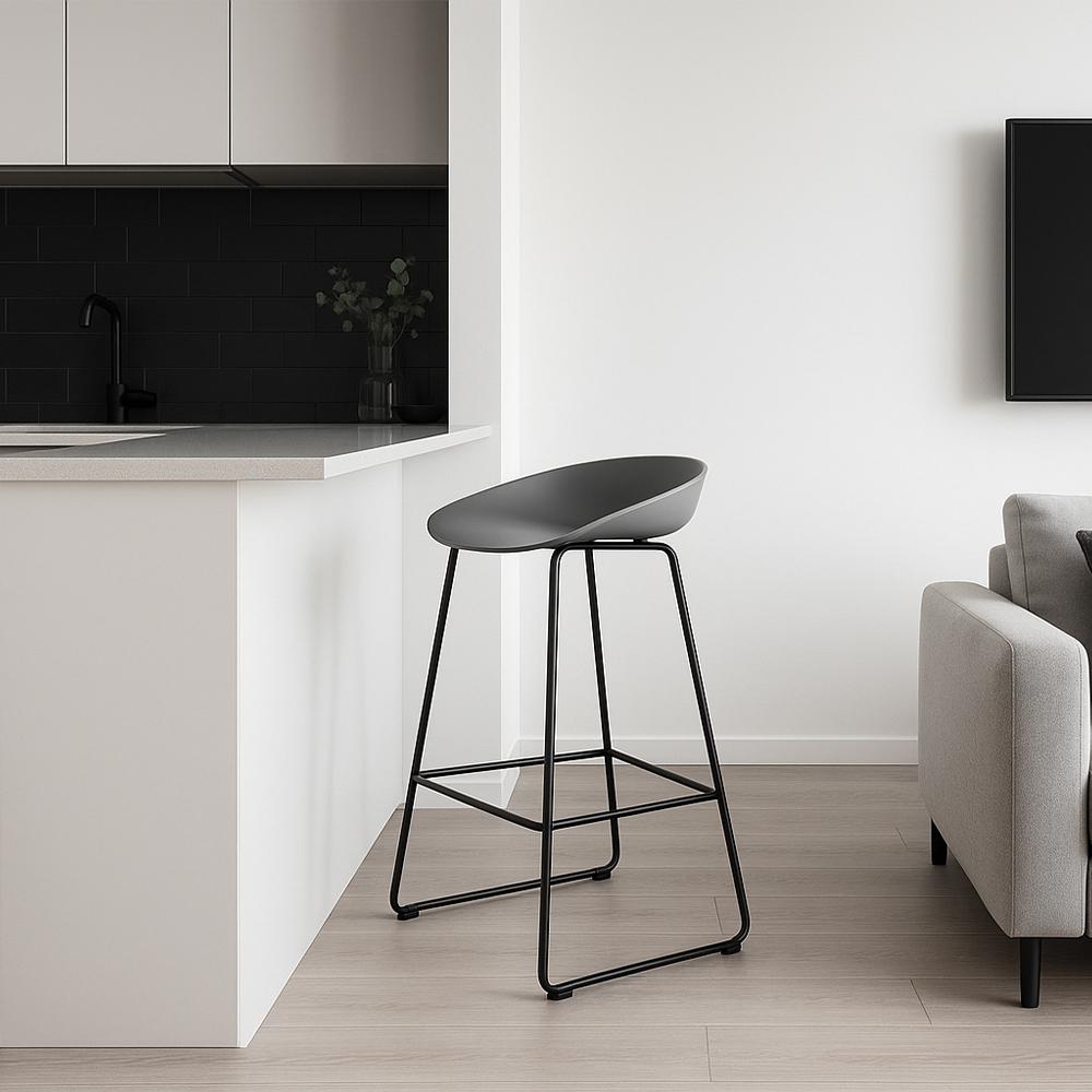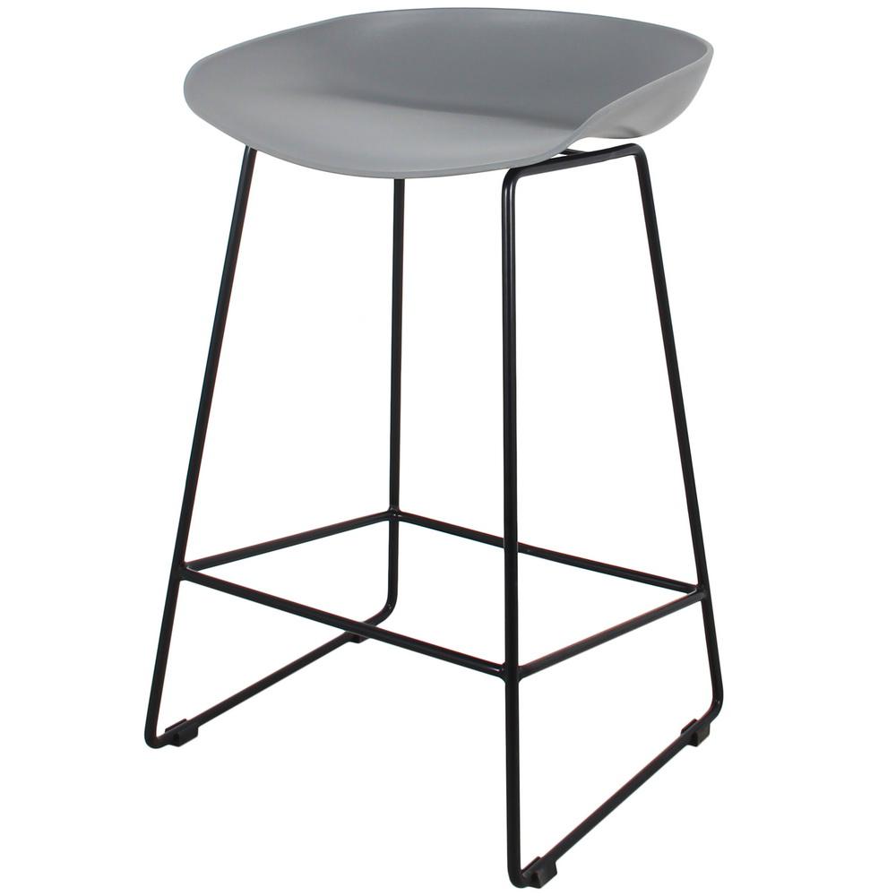 Утончённые металлические опоры, сиденье из пластика с невысокой спинкой - это минималистический современный дизайн полубарного стула NEO серый с черными ножками.