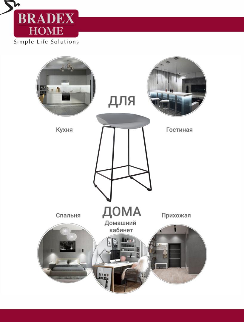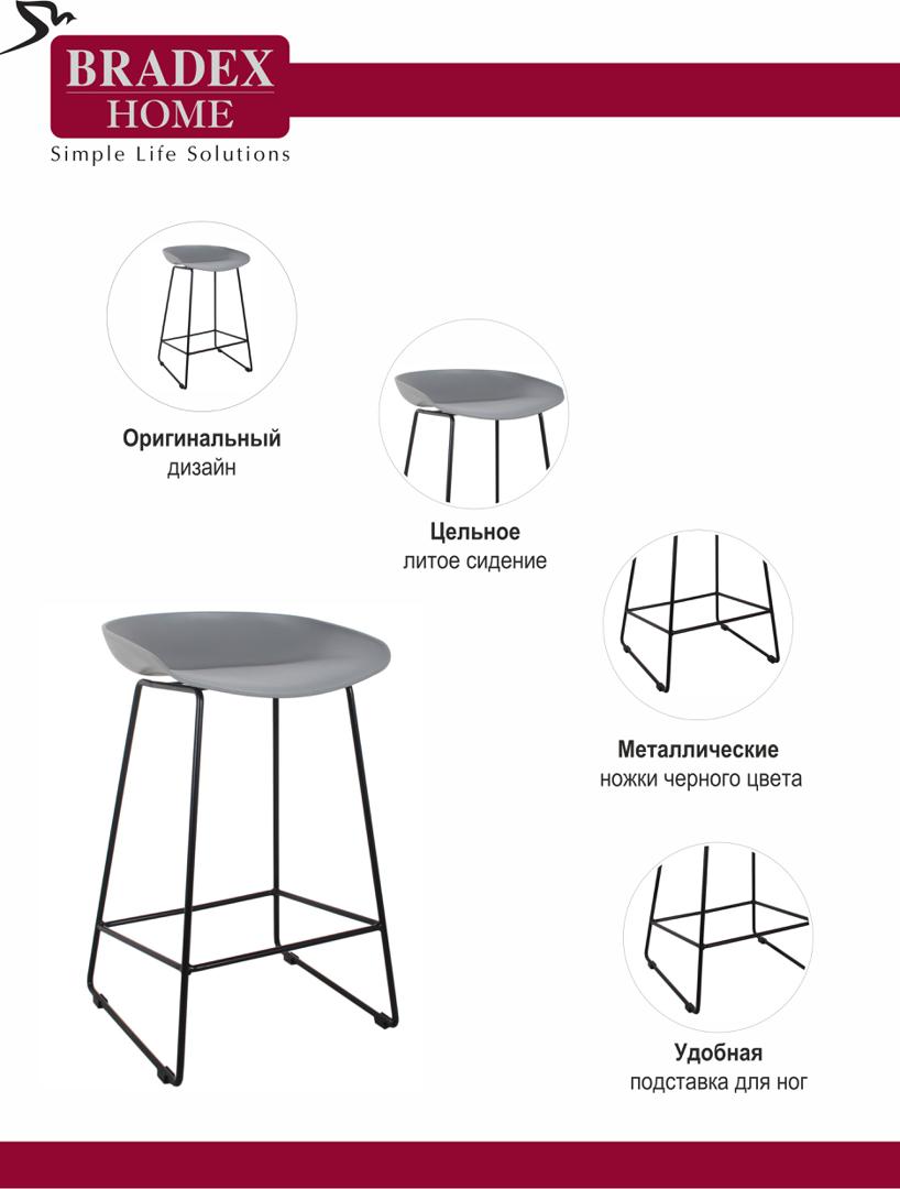Стул Bradexhome Стул полубарный Neo серый с чёрными ножками арт. FR 0699