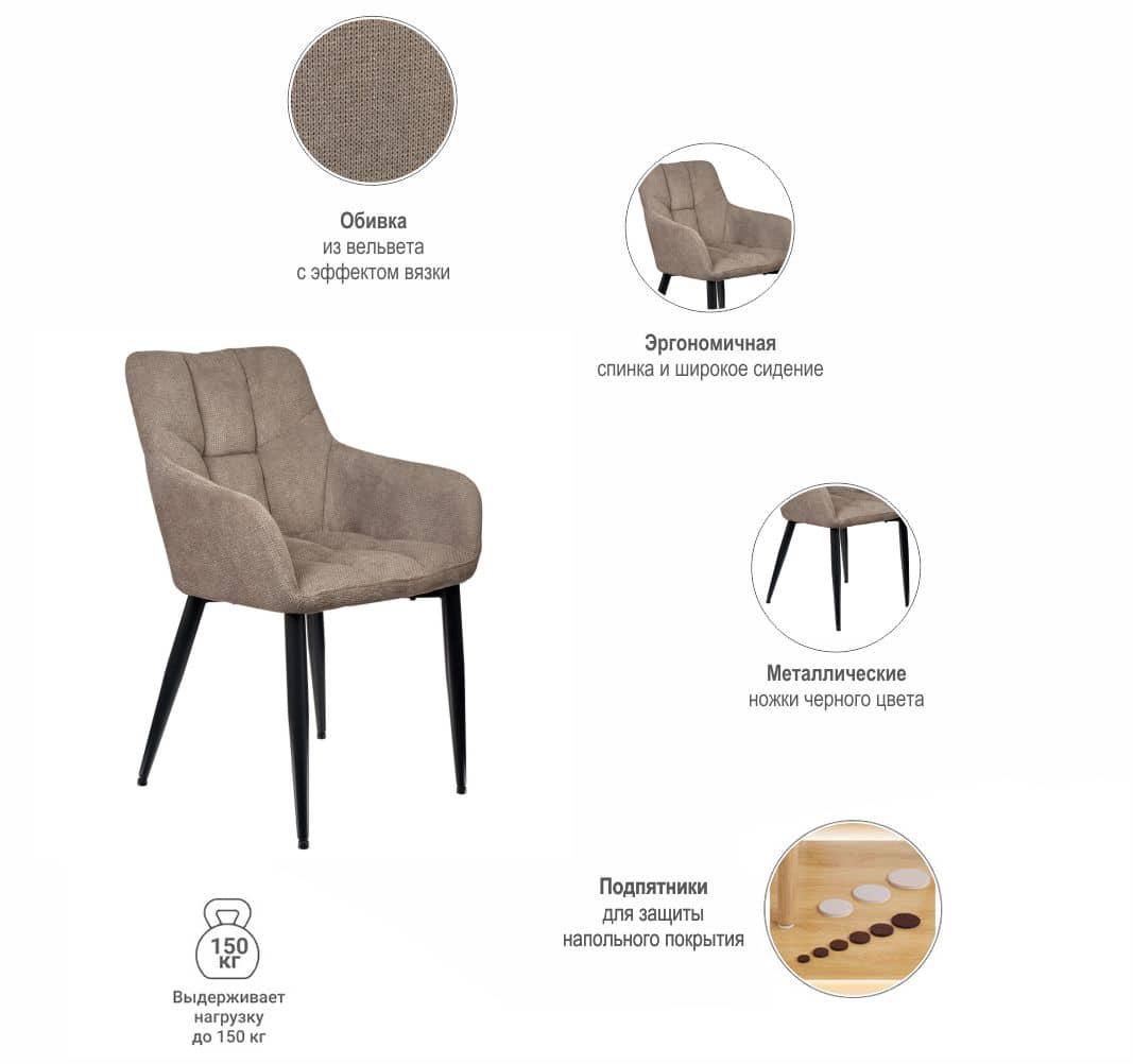 Погрузитесь в роскошь и комфорт с нашим мягким стулом вельвет с эффектом вязки. Изысканная обивка великолепно подчеркивает его изящный дизайн, а металлические ножки придают ему прочность и надежность. Этот стул подойдет как для создания уюта в вашем доме, так и для использования в общественных заведениях, добавляя шарма и комфорта в любое пространство.